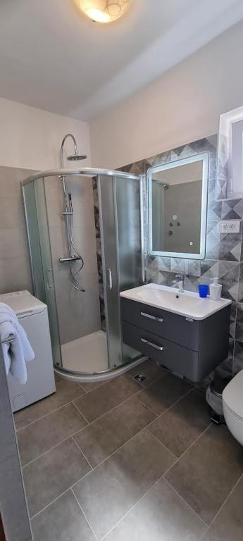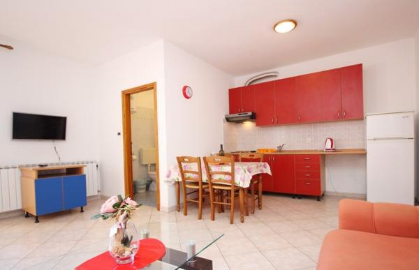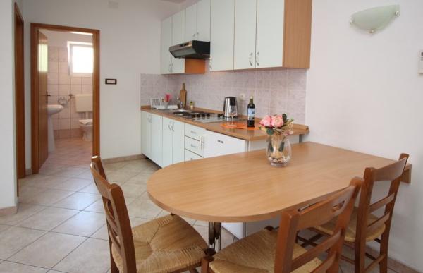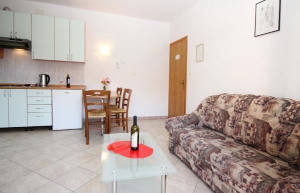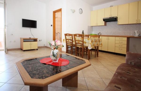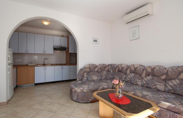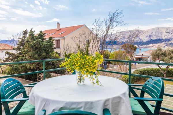House with 9 apartments in the center of Baska. 5 minute walk to the beach and town. Each apartment has air conditioning and wifi. Parking in the yard and a barbecue with tables. Aloud small pets up to 10 pounds. Til 3.07. and from 05.09. the special offer is 14 = 13, for 14 nights stay one is free.