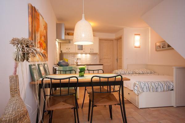 Mediterranea Apartments are located on the sea front in the center of Baska, only 100m from the beach. Both apartments are newly renovated, very attractive, with a hint of antiquity in the heart, as it used to be in Baska. Both apartments consist of one bedroom, kitchen, dining room where there is a sofa bed for two persons, a bathroom, a small lovely terrace where guests can drink morning coffee. Both apartments have a sea view from the window. Both apartments are equipped with air conditioning, satellite TV, radio, heating, dishwasher, microwave, kettle and OST., While private parking is located just 200m from the apartment. With apartments can be organized in front of the apartment and a boat or yacht.
