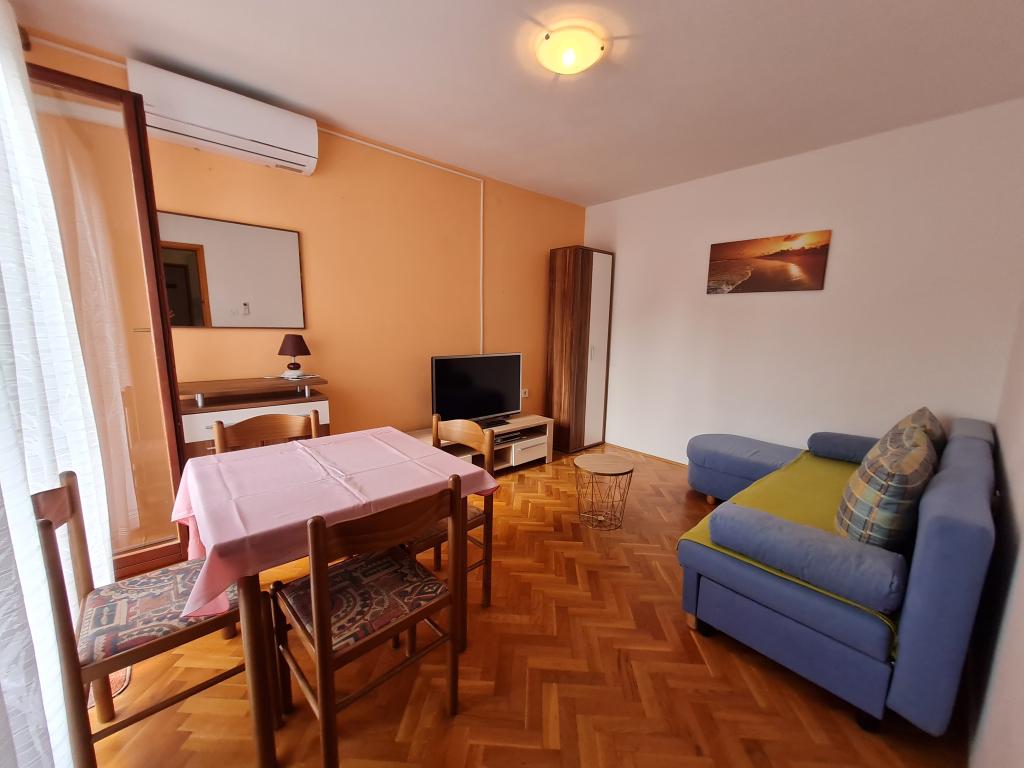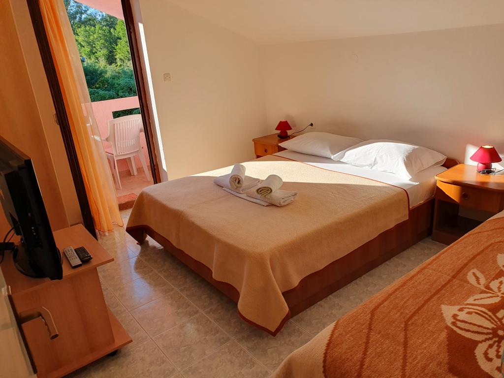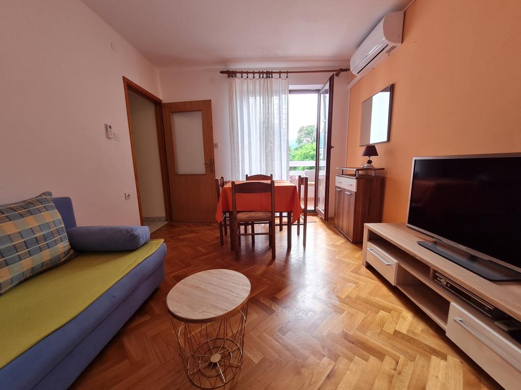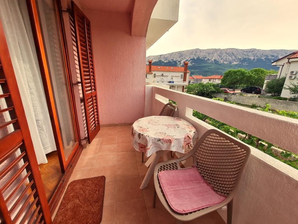 Apartments Mirjana Fičor are located in Baška, the most popular summer resort on the island of Krk, known for its most beautiful sandy beach. The apartments are located in a family house, we are in a quiet location, only 8 minutes walk to the beautiful beach and the same distance to the town center. Each apartment has a balcony with a beautiful view of the sea or the mountains surrounding Baška. We have a spacious parking lot in front of the house. We also have a large fenced garden, with lots of olive trees, fruit trees, lavender. Suitable for families with children. We have a total of 6 apartments. There is also an outdoor barbecue. Each apartment has air conditioning, satellite TV and free internet. We wish you a pleasant stay with us. Welcome. Family Mirjana and Vlatko Fičor, Baška