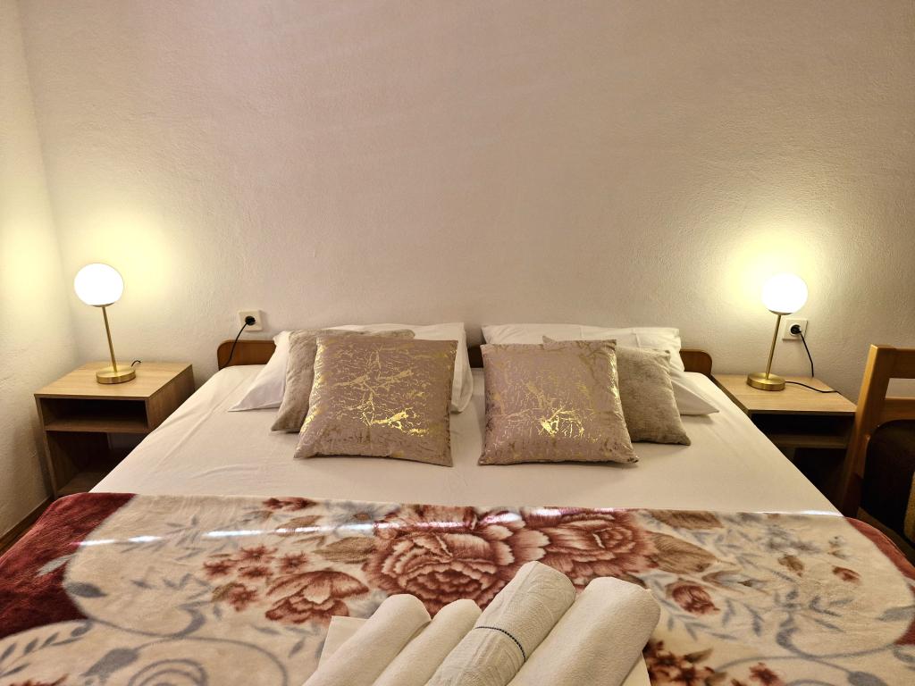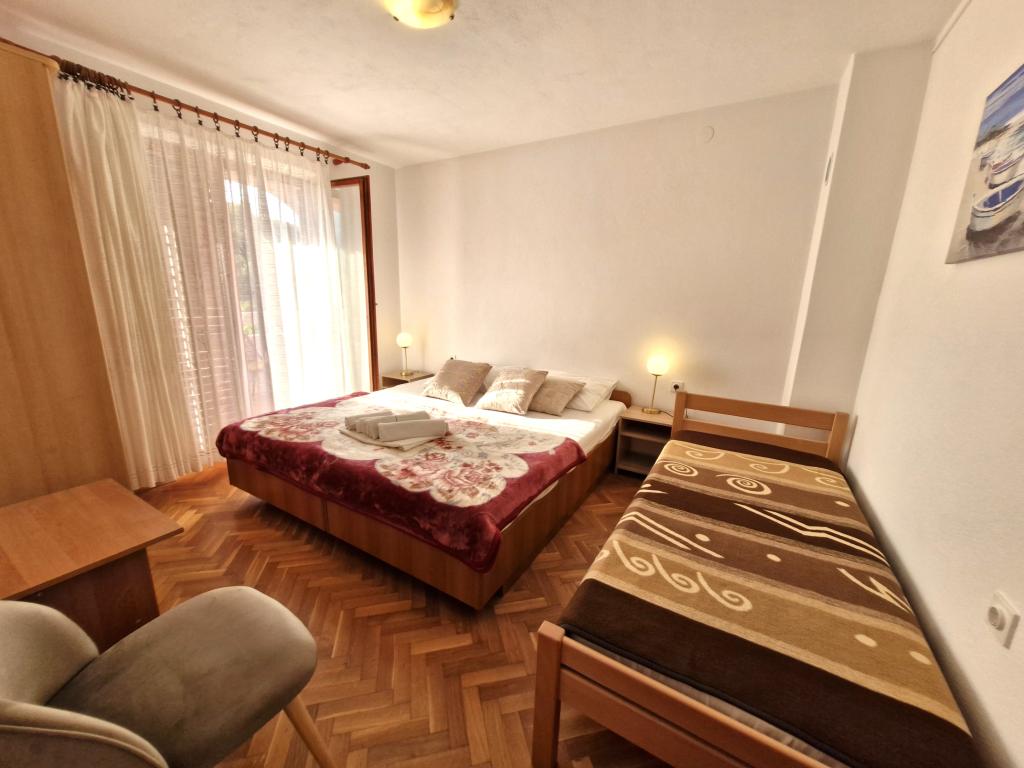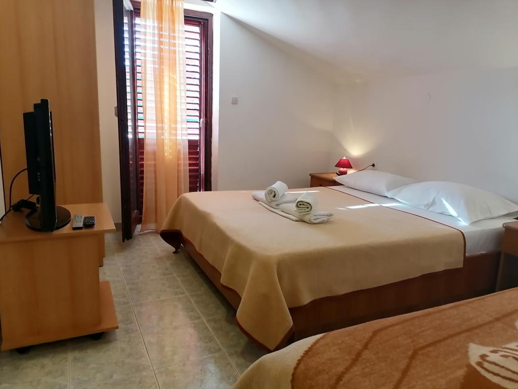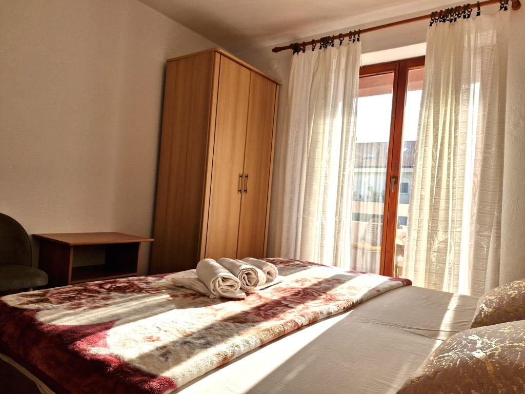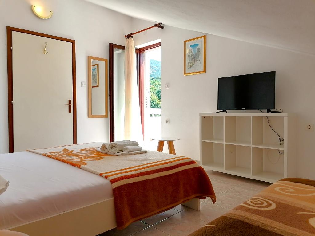 Apartments Mirjana Fičor are located in Baška, the most popular summer resort on the island of Krk, known for its most beautiful sandy beach. The apartments are located in a family house, we are in a quiet location, only 8 minutes walk to the beautiful beach and the same distance to the town center. Each apartment has a balcony with a beautiful view of the sea or the mountains surrounding Baška. We have a spacious parking lot in front of the house. We also have a large fenced garden, with lots of olive trees, fruit trees, lavender. Suitable for families with children. We have a total of 6 apartments. There is also an outdoor barbecue. Each apartment has air conditioning, satellite TV and free internet. We wish you a pleasant stay with us. Welcome. Family Mirjana and Vlatko Fičor, Baška