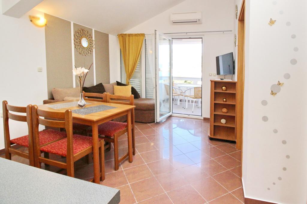 Accommodation unitsPlease note that reservations can be made for a minimum of 4 nights from 01.05.-19.06., for a minimum of 7 nights from 20.06.-04.09., and for a minimum of 4 nights from 05.09.-06.10. Prices will be displayed when you enter the desired period of stay and number of people. Prices by season can be seen under the € price list (on the right, below the pictures of the desired accommodation unit). Additional costs: tourist tax (adults 2.20 EUR/person/night; children 12-18 years 1.10 EUR/person/night) and registration (5 EUR/person/one-time) Pets - allowed - on request - (15 EUR/pet/night) For a fixed reservation, it is necessary to pay an advance payment (via bank) in the amount of 30% of the total price of the apartment. The rest of the accommodation and registration fee is paid upon arrival. Check-in to the apartment is possible after 2 pm, check-out is until 10 am.