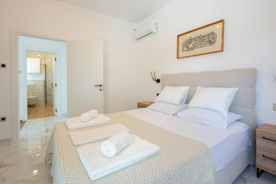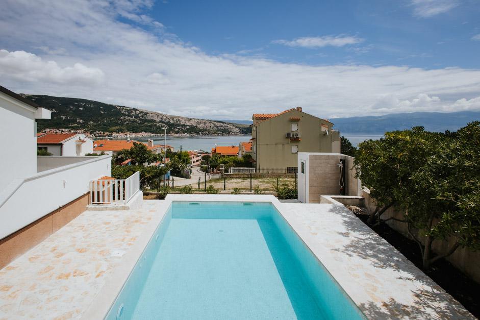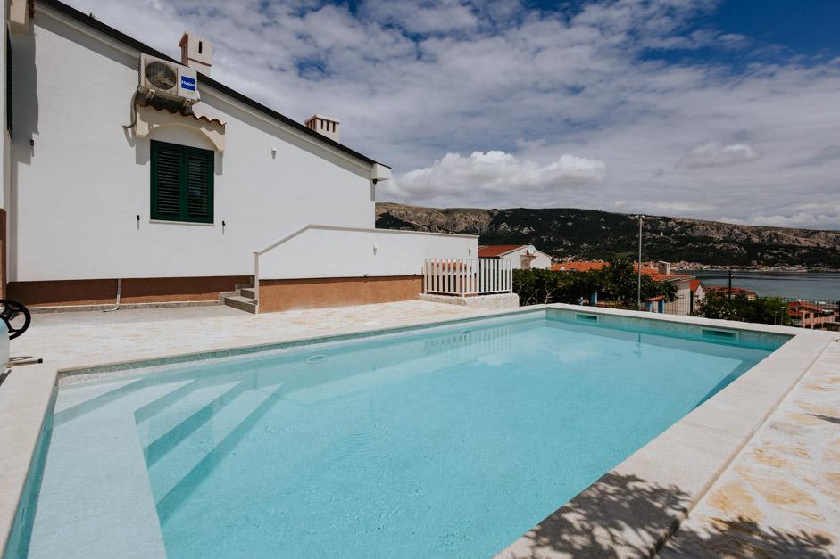 Our newly renovated Villa Zlata is located in Baška, the tourist pearl of the hidden bay of the island of Krk. The house is 400 m from the town center and 200 m from the sea, whose waves hit the 1800 m long pebble beach. Baška is a place with a rich past and cultural heritage, and not far away, in Jurandvor, there is the famous Bašćanska ploča, one of the oldest written monuments in the Croatian language. Villa Zlata offers accommodation for 4+2 people, it is also pet friendly, so it will be happy to host your pet as well. It is fully decorated and equipped, and it is located in an intimate environment of a pine forest where you will be able to enjoy the newly built private heated pool. You can feel the special pleasure of vacation by hanging out with the outdoor grill and the gazebo, while the youngest can have fun in the safety of the children's play area. For the ideal end of a summer day, relax on two terraces with the smell of pine and a view of the enchanting bay where the gentle blue of the sea and sky blend with the harshness of the huge Velebit in the distance.