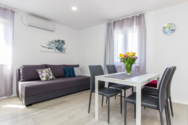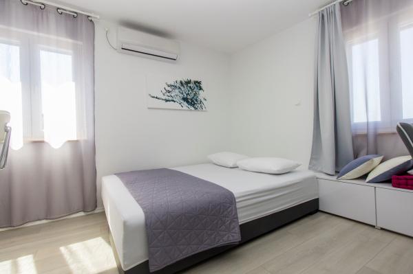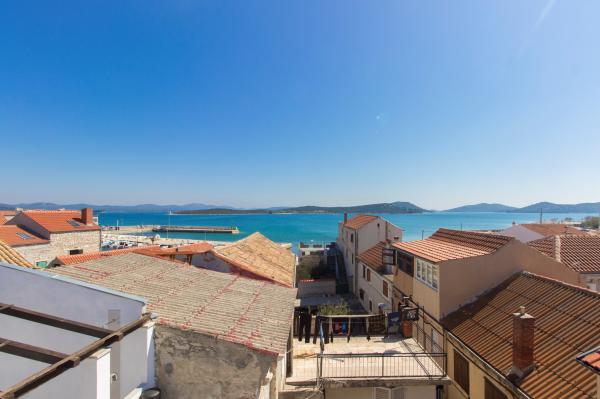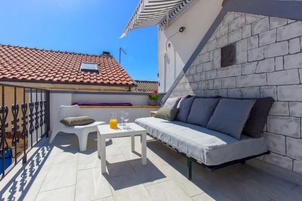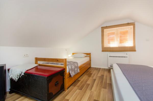 The apartment is located near the center (100 meters away) and the beach (200 meters away). Parking is available near the building, approx. 150 m away. The apartment is on two floors, located on the second floor and the attic of an old stone family house. The entrance floor of the apartment consists of a living room with a kitchen and a bathroom, and is connected to the attic by an internal staircase. Capacity 3+1, that is, a room in the attic equipped with a large double bed 180x200 cm, and a bed for one person 90x200 cm. In the living room, the three-seater can be folded out into a comfortable bed measuring 160x200 that can be used by 2 people. The kitchen is fully equipped, as well as the living room and bathroom (additional equipment: microwave, kettle, TV+Netflix, wi-fi, mini line, hairdryer, soap, shampoo), all openings have mosquito nets. Each room is individually air-conditioned. The apartment has a terrace of 12 m2, equipped with an awning and seating furniture.