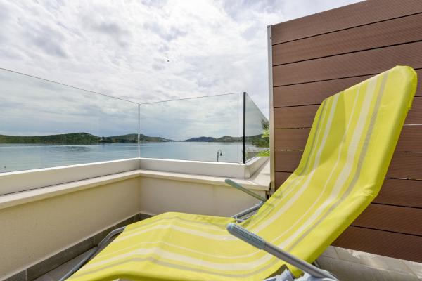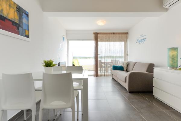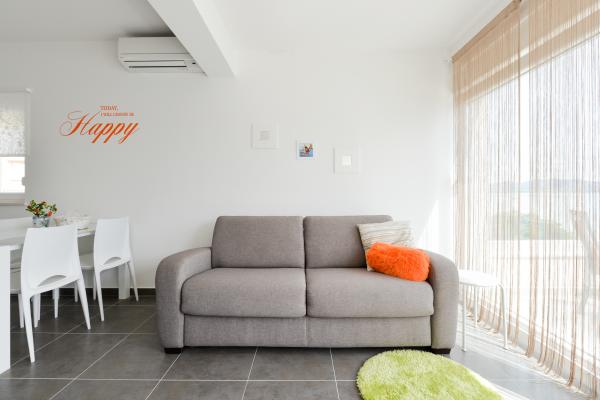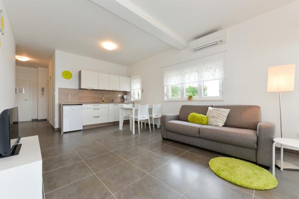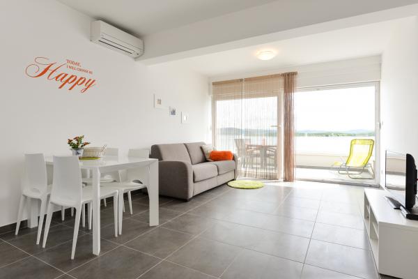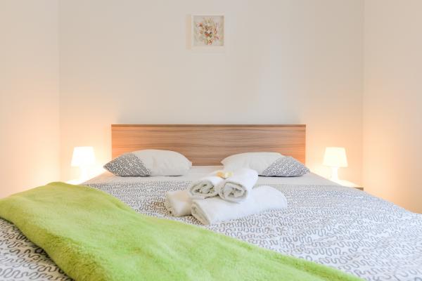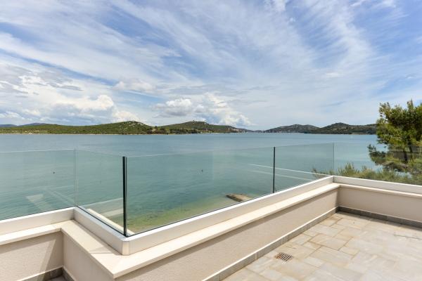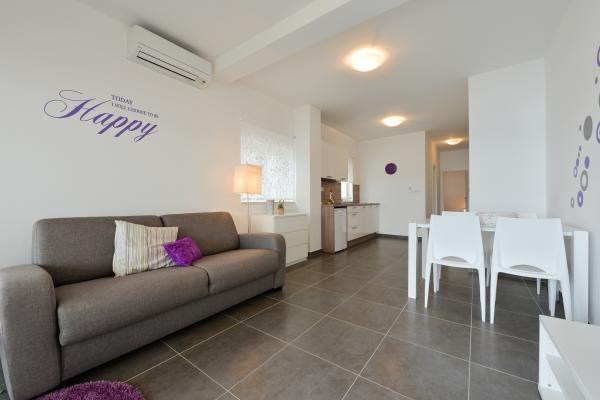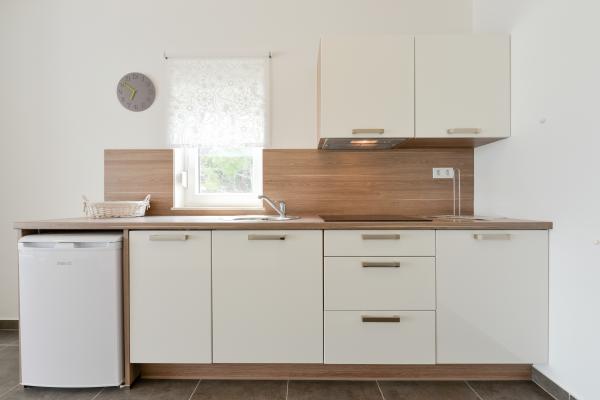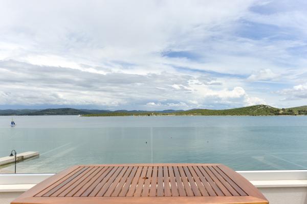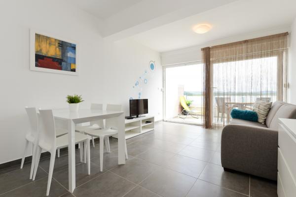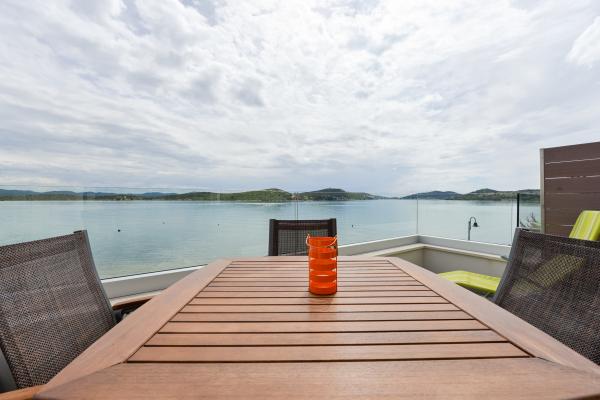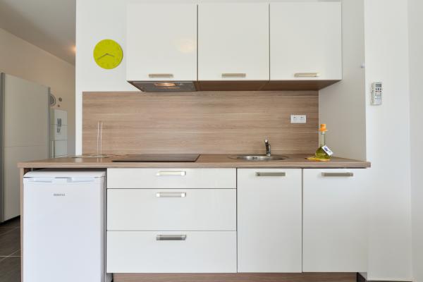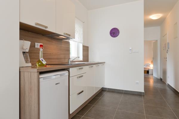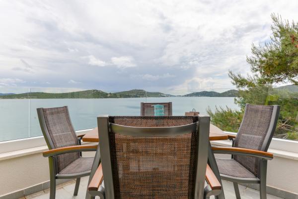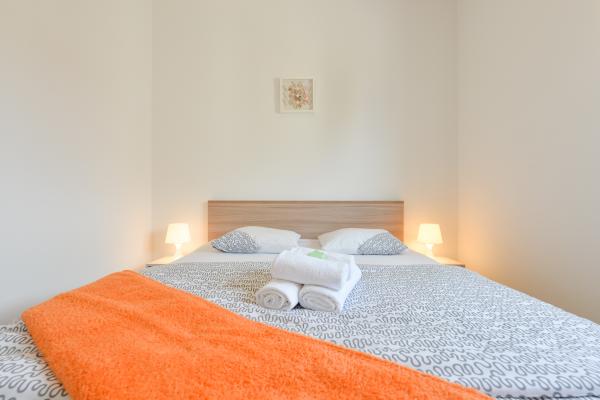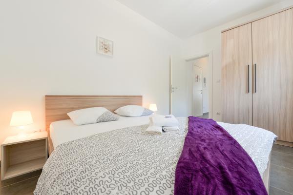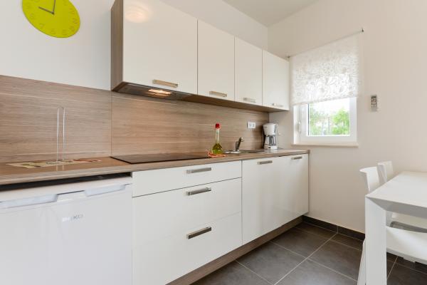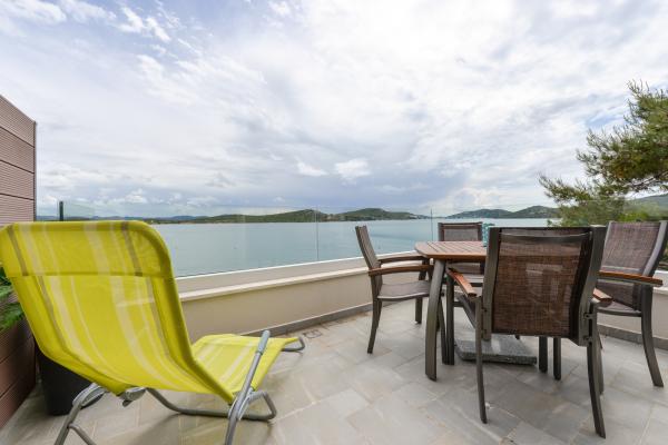 We will welcome you in the new build house located first row by the sea with four equipped and comfortable apartments of 40 m2 with 2 2 beds. You can use bikes for morning shooping, the barbecue and place for relaxation and fun in the garden. You have your own parking place and the possibility to use sun luongers and parasols for the beach. To the nearest sandy or rocky beach you will just have to cross one non-traffic street wich you can use, over the evening hours, for long walks or bike riding. At a distance of 300 m there are bars, restaurants, shops, the post office and the pharmacy.