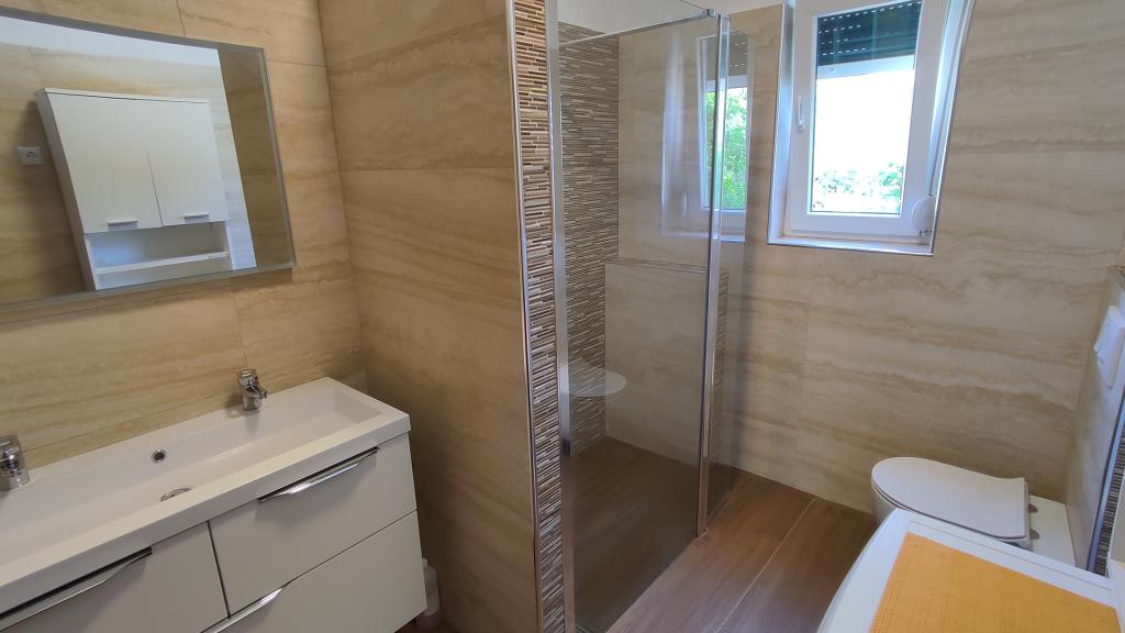 Apartment Andrea with 3 stars *** is located in a quiet, tourist, family place Bibinje near Zadar. Modernly decorated, fully equipped accommodation for 4 people offers quality and pleasant vacation for the whole family. Spacious apartment of approximately 90 m2 is located on the 1st floor of a family house and contains: kitchen, bathroom, spacious dining room and living room, terrace overlooking the garden, two bedrooms (1 with balcony) and parking in the yard. Apartment equipment includes: air conditioning, smart tv, internet, wifi, satellite, radio, refrigerator, kettle, washing machine, dishwasher ... The nearest beach is only 300 m walk from the apartment, and nearby is everything you need (center, shop, restaurants, pharmacy, doctor ...) The city of Zadar and its famous sights are only a few kilometers away by car.