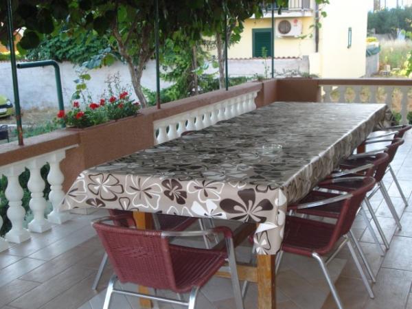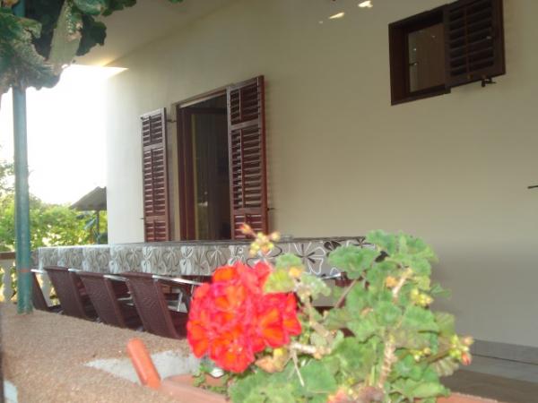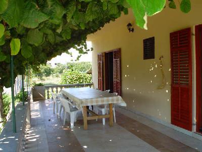 The house with 4 bedrooms, away from the sea only 50 meters, in a quiet part of the dates. The house is located second row to the sea, 40 meters from the beach. Parking space. Large terrace covered with greenery which provides shade and protection from the sun. The house has a barbecue. The building is air conditioned, has internet and satellite TV.