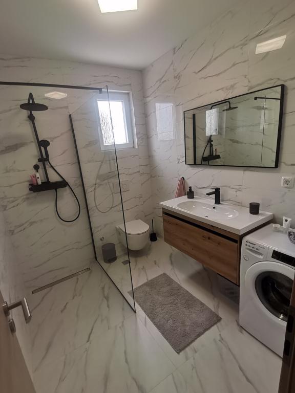 Apartment S is a modern and newly built apartment located in Bibinje, only 4 km from the old town of Zadar, and offers air-conditioned accommodation with a paved part of the yard. This property offers access to a balcony, free private parking and free WiFi. The facility is non-smoking and is 400 meters from the beach Na Škaljici. This spacious apartment with a terrace and sea view has 2 bedrooms, a living room, a flat-screen TV, an equipped kitchen with a dishwasher and an oven, and 1 bathroom with a shower. Towels and bed linen are available in the apartment. For additional privacy, the accommodation has a private entrance and soundproofing. Karabana beach is 400 m from the apartment, and Sulterova vala beach is 450 km away. The nearest airport is Zadar Airport, 7 km from Apartment S. A barbecue is also available.
