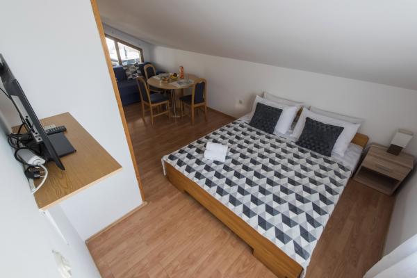 Normal and correct hosts. They will be at your service for all questions, if you don't have any questions, they won't bother you. Everything as described and agreed. Secured parking, air conditioning, terraces with a view of the sea. Beach close to 10 minutes walk. Bibinje is a peaceful and quiet place, I would recommend it for a stay with small children.