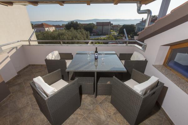 Dear guests, the facility is located a 5-minute walk from the shops, a 5-minute walk from the beach, and a 15-minute walk from the center, where there are two restaurants, a post office, an ATM, a bakery, a marker, a butcher's shop, an infirmary, and a pharmacy. Restaurants on the coast are a 15-minute walk along the sea. Zadar is 5 km away, connected by a bus line every hour to the place, the bus stop is a 3-minute walk from the property. An hour and a half's drive from the property are the Krka and Plitvice Lakes National Parks and the Kornati National Park, as well as the Vrana Lake and Telaščica nature parks.