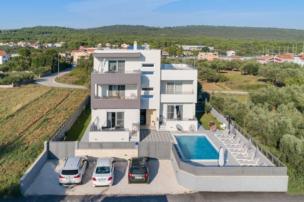 Apartments Evita are located 5 km from the city of Zadar. Only 300 m from the beach, 400 m from the first large store, 1 km from the center. They are located in a quiet part of Bibinje. New, modernly decorated apartments with a heated pool, wifi, private free parking, . . Each room is air-conditioned, there are mosquito nets on every window and door, each apartment has its own private entrance. The apartment also offers free use of bicycles.