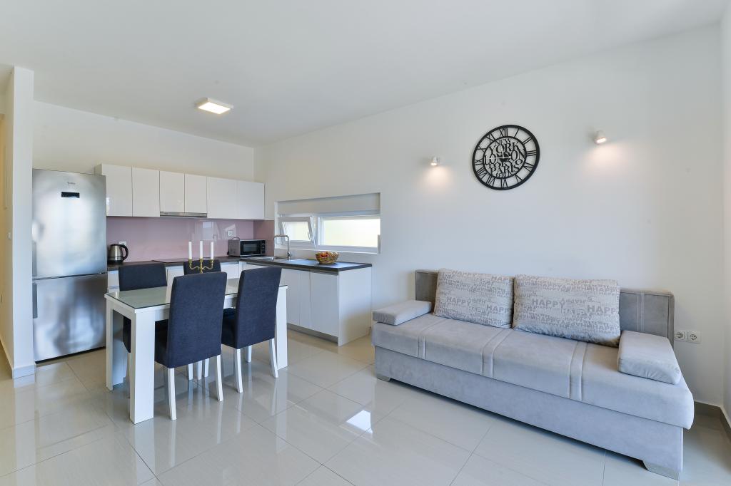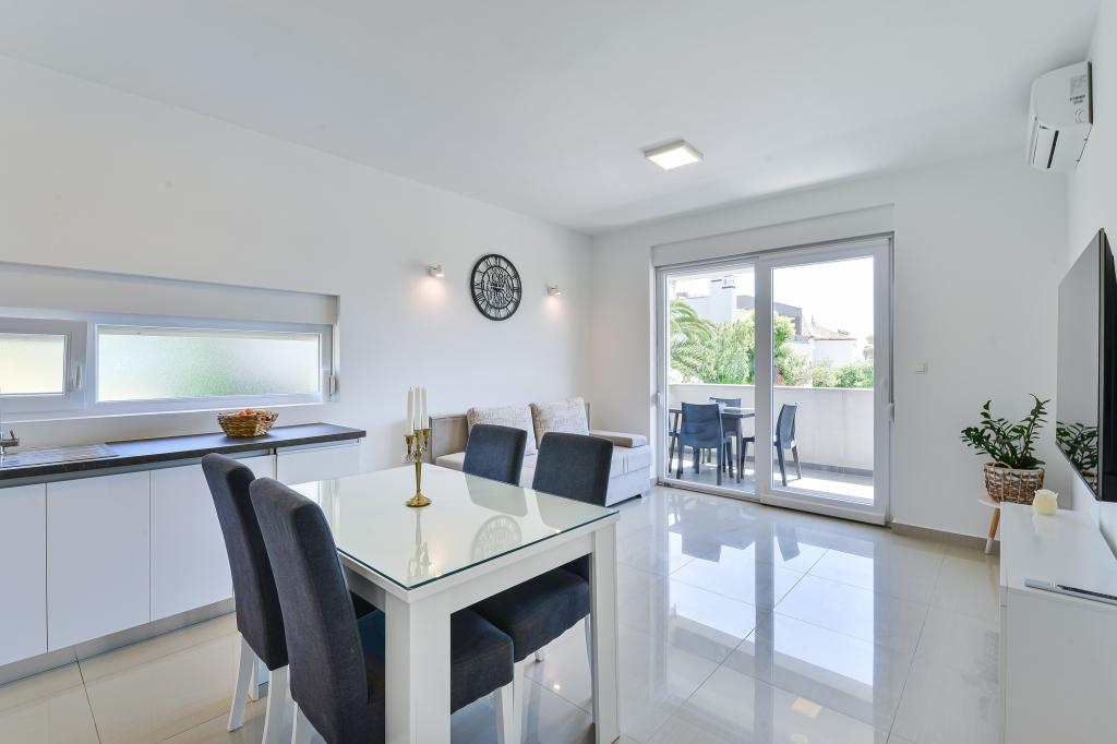 Fabian Apartments are located in the tourist area of Bibinje called "Kraj Punta". The facility is located 20 meters from the sea, from where a beautiful view of the Adriatic Sea and the Dalmatian islands stretches. The distance from the ancient city of Zadar is 10 minutes by car, where there are several large shopping centers. Within a radius of 30 km there are three national parks: NP Paklenica, NP Kornati, NP Krka. Excursions to the national park are also organized with departure from Bibinje or Zadar. All accommodation units are air-conditioned, equipped with a private bathroom, terrace, smart TV diagonal 140cm with satellite channels, room TV diagonal 110cm, equipped kitchen with dishwasher. The nearest restaurant and shop are 150m from the facility. A cafe bar and cocktail bar are 50m away. The beach is 20m from the facility, on the beach guests can rent a jet ski, go windsurfing or play beach volleyball. The facility includes free WIFI Internet, free parking. For a pleasant summer vacation with rays of sunshine and the smell of the sea, Apartments Fabian