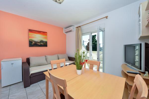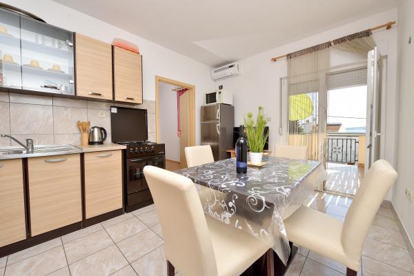 Fully equipped and modern apartments in a quiet area of the dates, located in the second row to mora.Apartman is located 30 meters from the sea and 80 meters from the pebbled beach has free internet, satellite TV, air conditioning, TV, terrace with sea view, barbecue , parking, apartment 2 +2 +4 and 6 have a dishwasher and washing machine