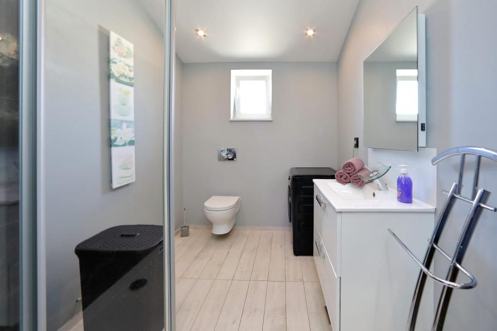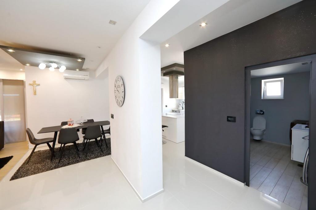Luxuriously equipped deluxe apartment Neli with three bedrooms is located near the sea in Bibinje. The apartment is fully equipped with three bedrooms, two bathrooms, kitchen with all appliances, large refrigerator with freezer, oven, kettle, coffee maker, dishwasher ... the apartment has a large terrace overlooking the sea and islands, wifi, satellite TV, air conditioning and parking in front of the house. Close to shops, restaurant center and bus station
