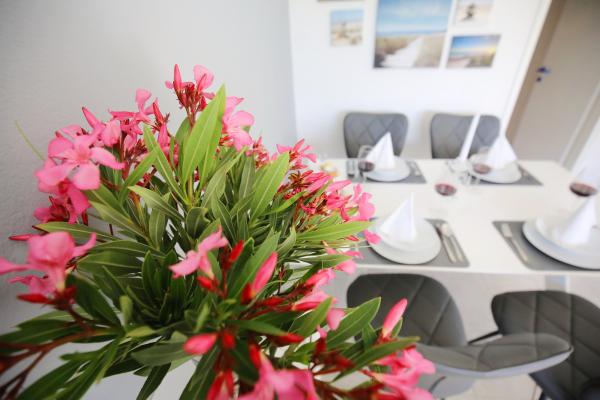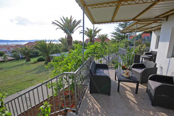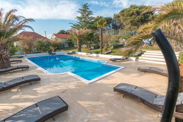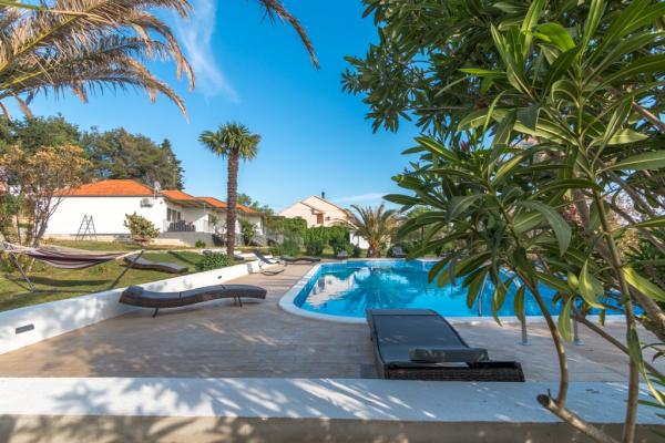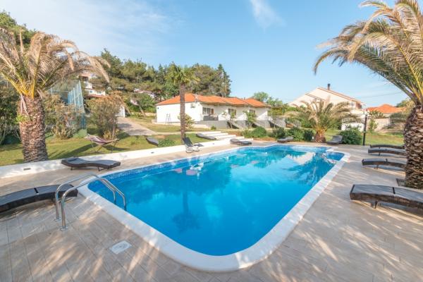 Mediterranean apartments are located in Bibinje, about 900 m from the beach and the town center, 5 km from Zadar, with a large garden (4000 m2), large swimming pool. 4 nicely decorated apartments 2 2, offer guests everything they need for a comfortable vacation. each apartment has a kitchen, a living room with a double bed, a bathroom with a toilet and a toilet, a large terrace. apartments have air conditioning, satellite TV, wi-fi, large parking. guests can use the soccer, volleyball, basketball and tennis courts we have in the yard. Is welcome !!