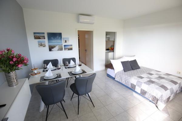 The owners are very kind. Apartments are clean, well equipped. Swimming pool with phenomenal surroundings! All in all, the overall impression is excellent, we recommend.