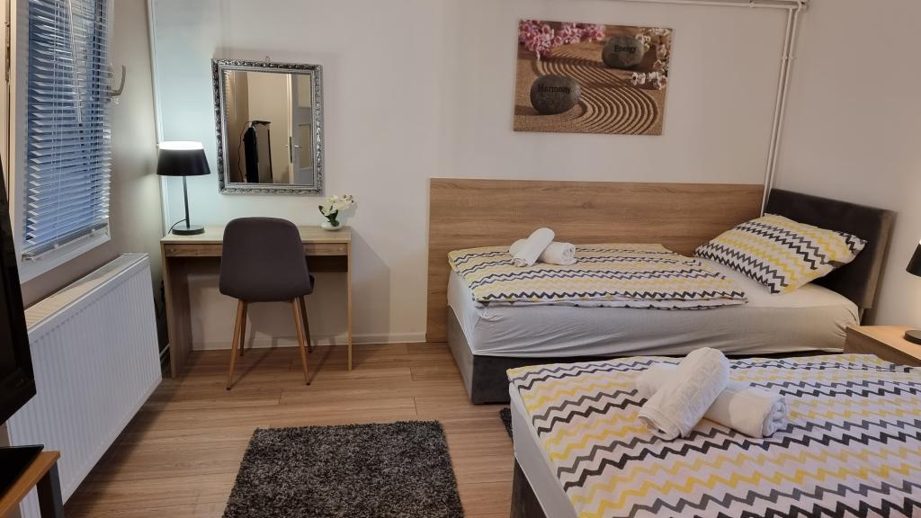 Private accommodation Corina offers modern and comfortably furnished rooms and an apartment in the quiet village of Bilje, a suburb of Osijek, 3 km from the Kopački rit nature park, and 5 km from the city of Osijek (Tvrđe). Staying in our accommodation you can enjoy the benefits of nature, and wake up to the smell of fresh flowers and the chirping of birds. Room (double 23 m2) Room facilities: -garden view -SMART TV 126 cm (internet television, Netflix) - air conditioning - iron - dining table with two chairs - central heating - mosquito net - wardrobe - bathroom with shower and toilet - hairdryer - free toiletries - bed linen - free wi-fi internet. Triple room (25 m2) Room facilities: - garden view - SMART TV 110 cm (internet television, Netflix) - air conditioning - iron - dining table with two chairs - central heating - mosquito net - bathroom with shower and toilet Apartment 46 M2 garden view - SMART TV 120 cm (internet television-living room) Smart TV 126 cm bedroom washing machine