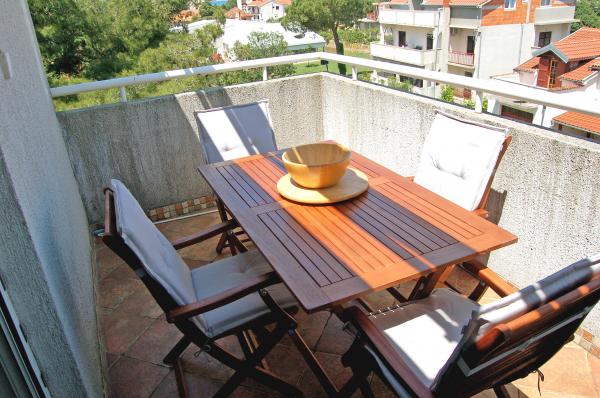 Beautifully decorated and extremely clean apartment in Biograd na moru, ideal for a family without or with a maximum of two children. The apartment consists of a bedroom with a double bed, a living room with a pull-out bed, a kitchen, a bathroom and a large balcony with a dining table. The apartment is equipped with air conditioning, complete kitchen, HD TV and flat high speed internet (should be in use from 10th July). The apartment is located in a new building near the beach (5 min walk), sports grounds (5 min walk) and the main waterfront and town center (10 min walk by the sea and the pine forest). Nearby is also a summer cinema. In front of the house is a parking space.