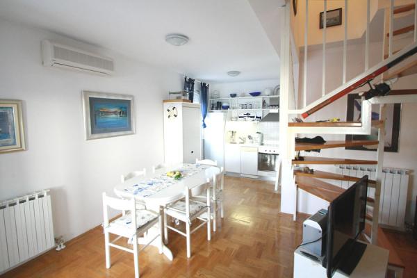 New large apartment on two floors in the center of Biograd. Modern furnishings, close to all essential facilities. Two air conditioning, parking. Possibility of boat trips. The apartment is located on the fourth floor of a building with an elevator.