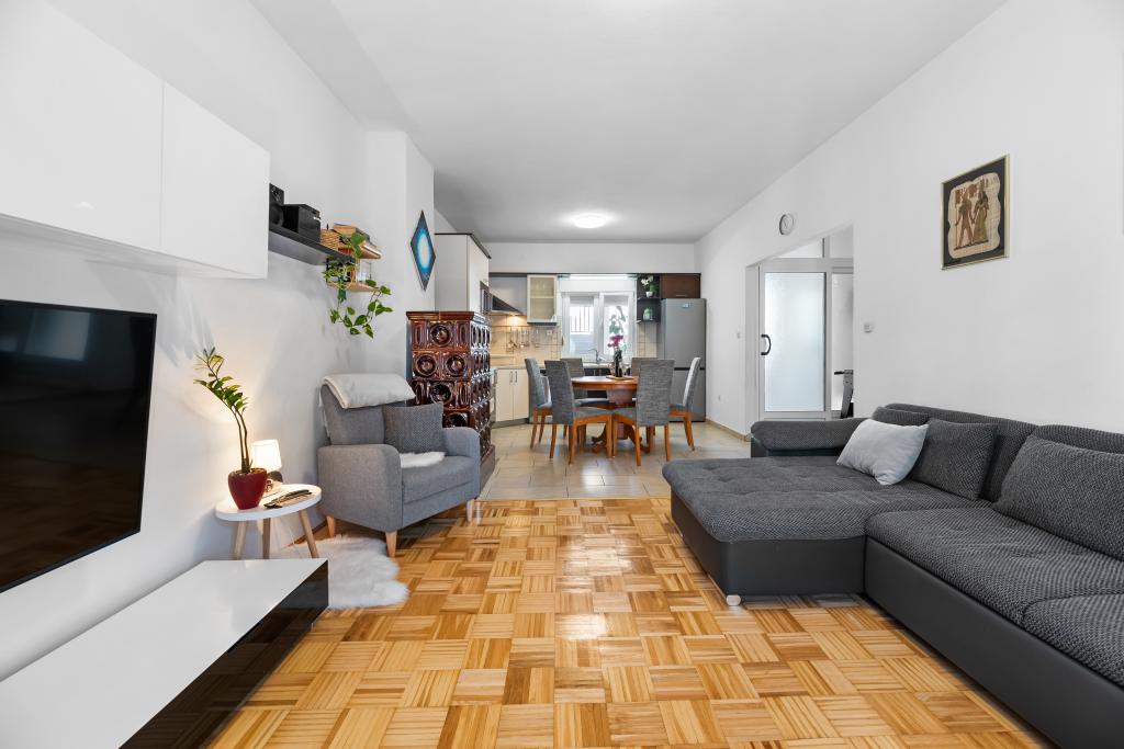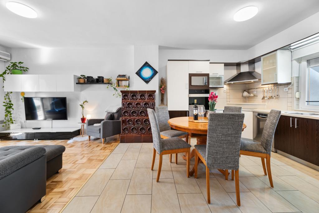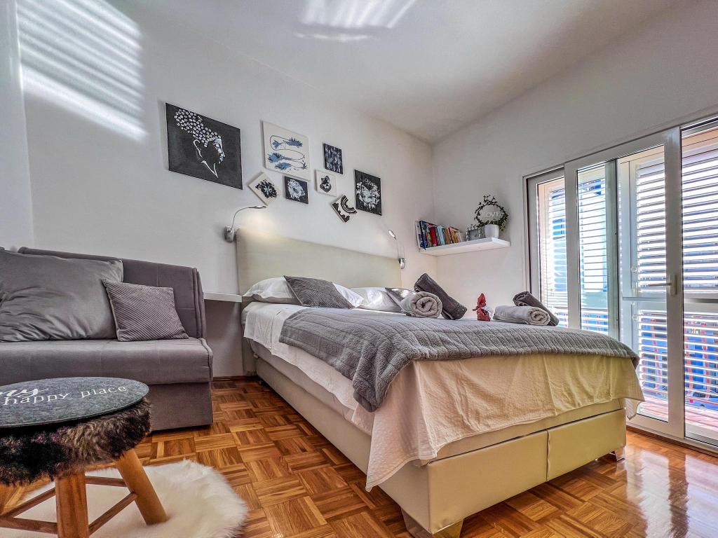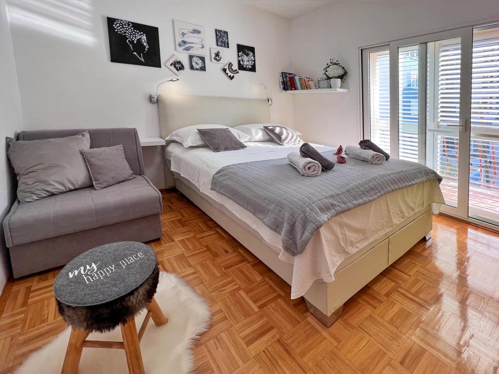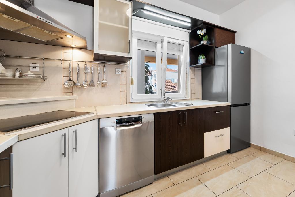 Apartment for rent in the very center of Biograd na Moru. We have been dealing with tourism since 1950. The apartment is fully equipped: air conditioning, refrigerator with freezer, oven, washing machine, dishwasher, max TV, Netflix, wifi, etc... In the immediate vicinity of 100 meters is Dražica beach, which is also the most beautiful beach in Biograd, and has been awarded blue flag for the most beautiful beaches of the Adriatic. There are also numerous shops, cafes, restaurants, banks and everything else around us. The apartment has 3 stars and secured parking. Apartment ZARA is for max. 8 people and is located on the first floor of a family house and has two bedrooms and a large living room with a sofa bed. In front is a large terrace with a table and chairs, and a beautiful swing for resting and enjoying the sun. We have a cot if needed.