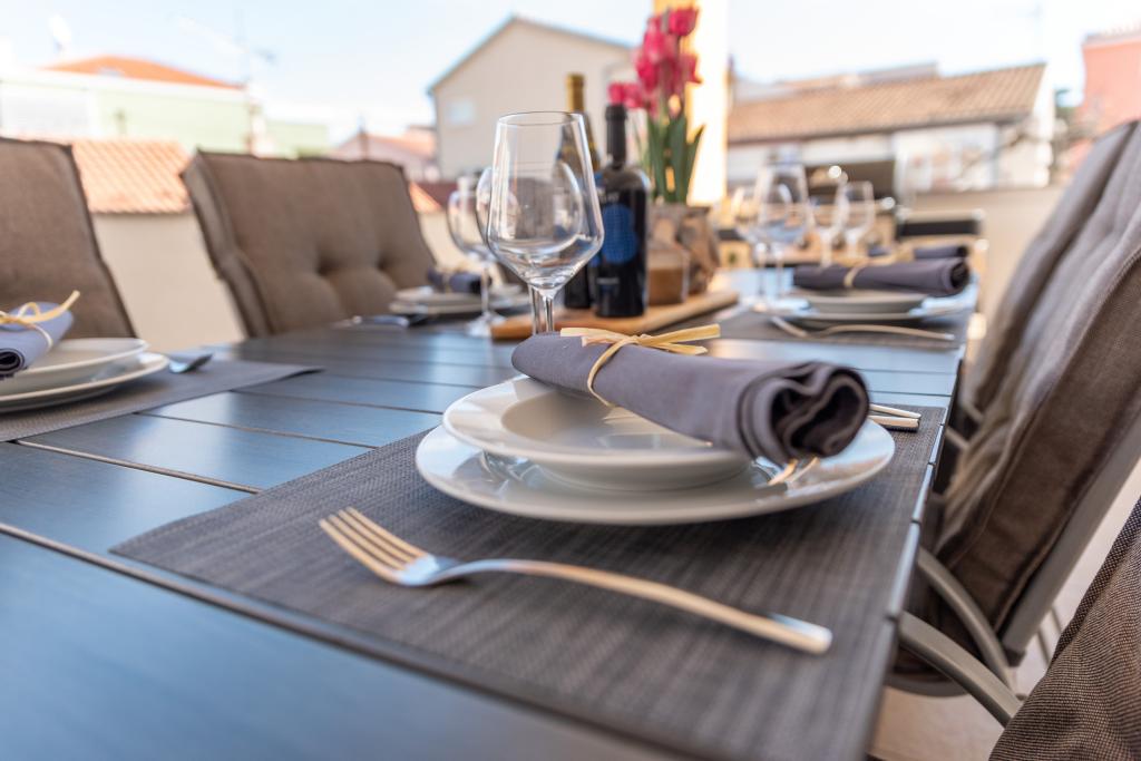 Apartment ZARA has a terrace of 40 square meters and two balconies on the opposite side. PARKING IS SECURED IN FRONT OF THE HOUSE and is included in the price. Although we are in the center, the nights are quiet because the nightclubs are further from the center and the house is not on the street, so you can't hear the traffic.