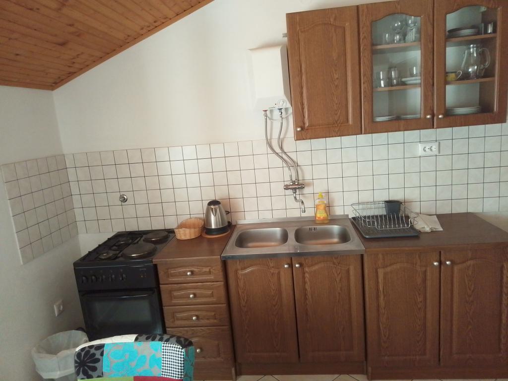 Apartments Jadran are located in a quiet apartment complex in Biograd na Moru Kumenat, located away from the city center, next to a tourist camp surrounded by pine forests. The town center can be reached by a 10-minute walk along the promenade along the sea. The distance from the beach of the same name, Kumenat, is about 100 meters, and from the second sandy beach, Soline, about 300 meters. The apartments are located on the second and third floors of a family house with a view of the sea and islands, with a total area of 65m2 each apartment, consisting of two separate rooms with beds, extra beds and another room with two beds, a kitchen-living room, hallway, bathroom, two terraces. Each apartment has 2 rooms, plus an extra bed, so the accommodation is suitable for 5 people, and two terraces on the front and back of the house where you can enjoy and relax with the morning chirping of birds and enjoy the view of the sea and islands as well as romantic sunsets. The number of nights depends on the choice of guests, the price list is available by clicking on the price list button. Welcome!