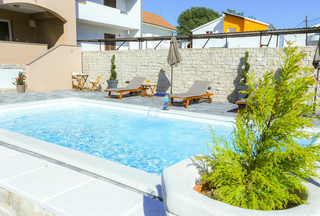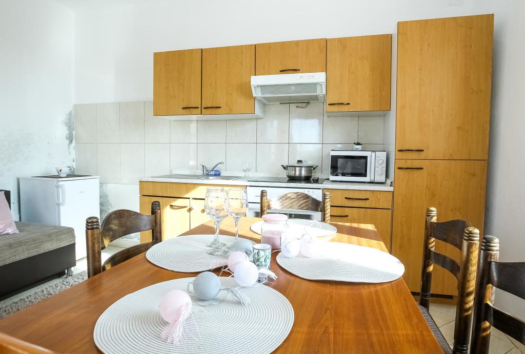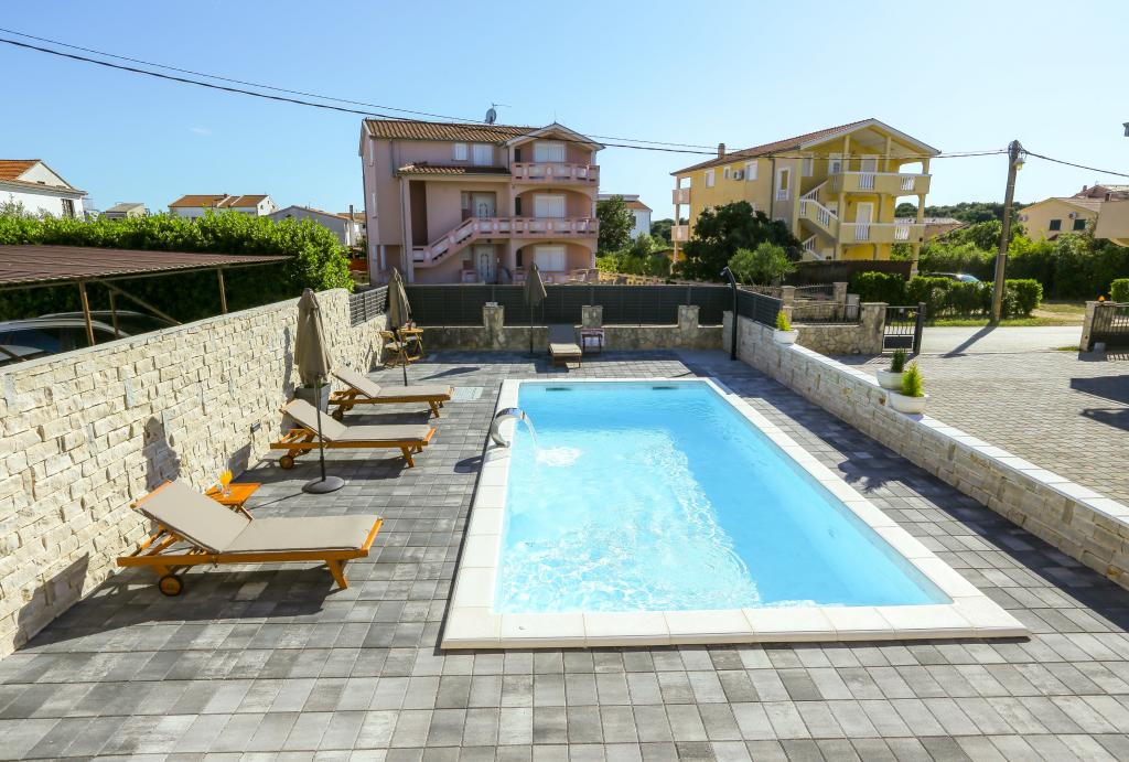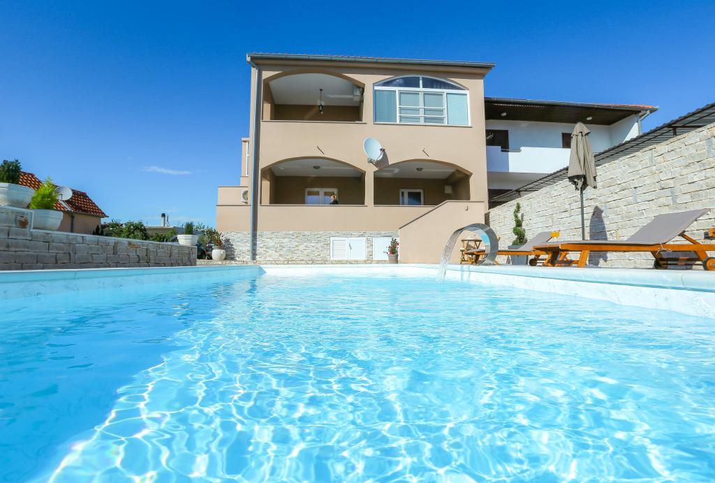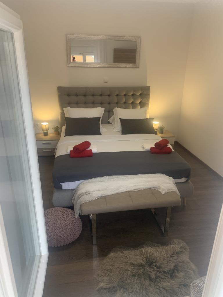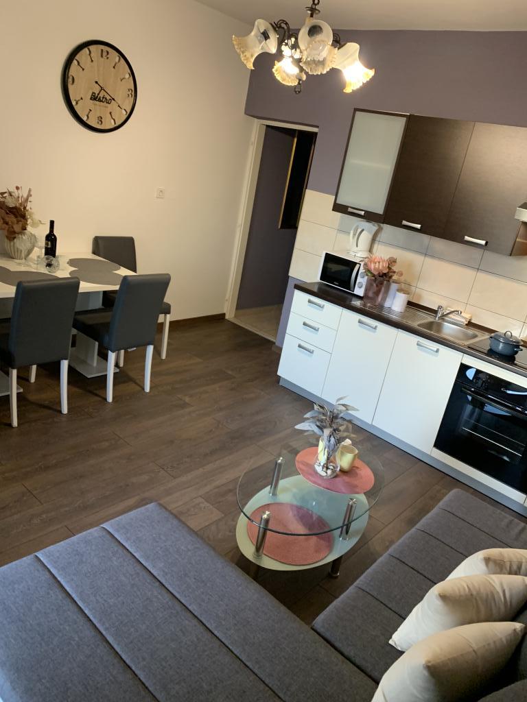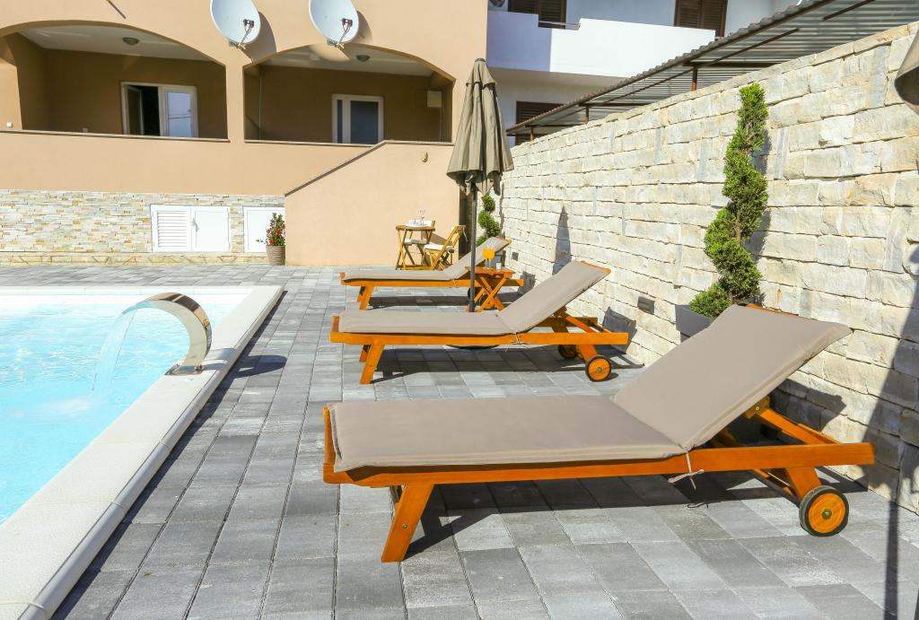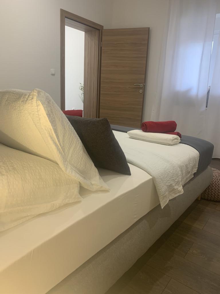 Neat and clean apartments, finally found an apartment with enough towels, dishes, glasses, bešteka. dishwasher, washing machine, roll, microwave, stove, air conditioning. large terrace, large parking. to the beach 2 minutes by car. quiet neighborhood, kind hosts. Clean pool enough sunbeds and umbrellas. The beds are comfortable.