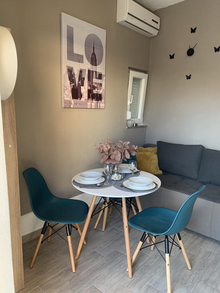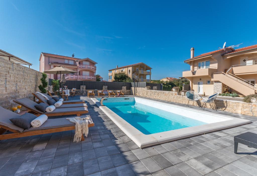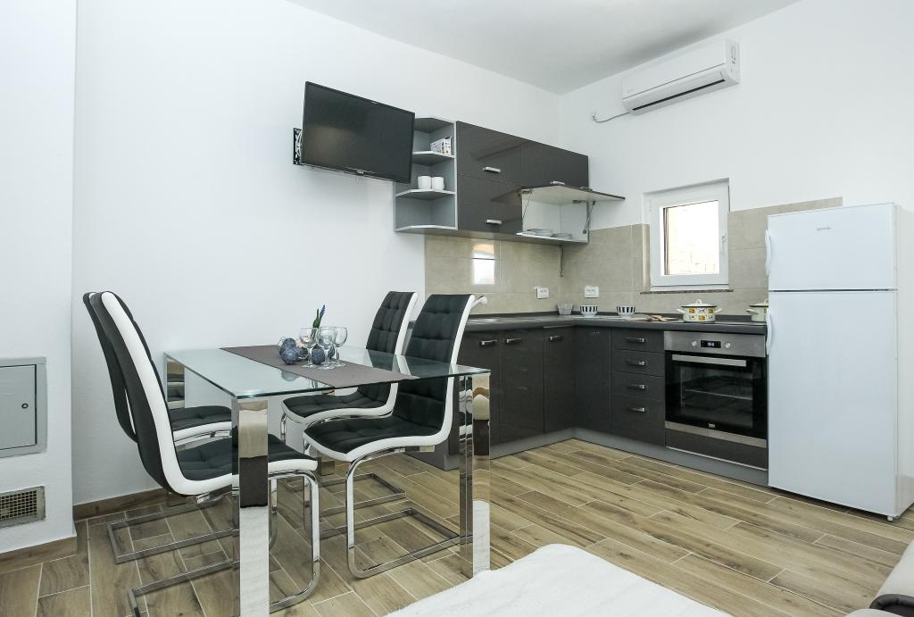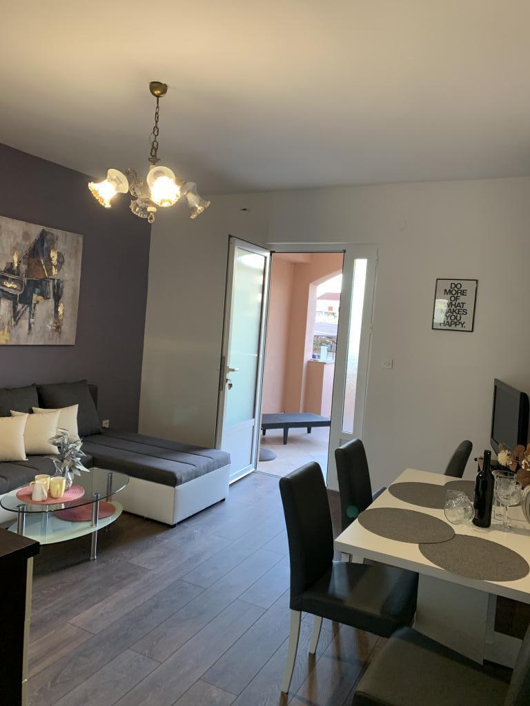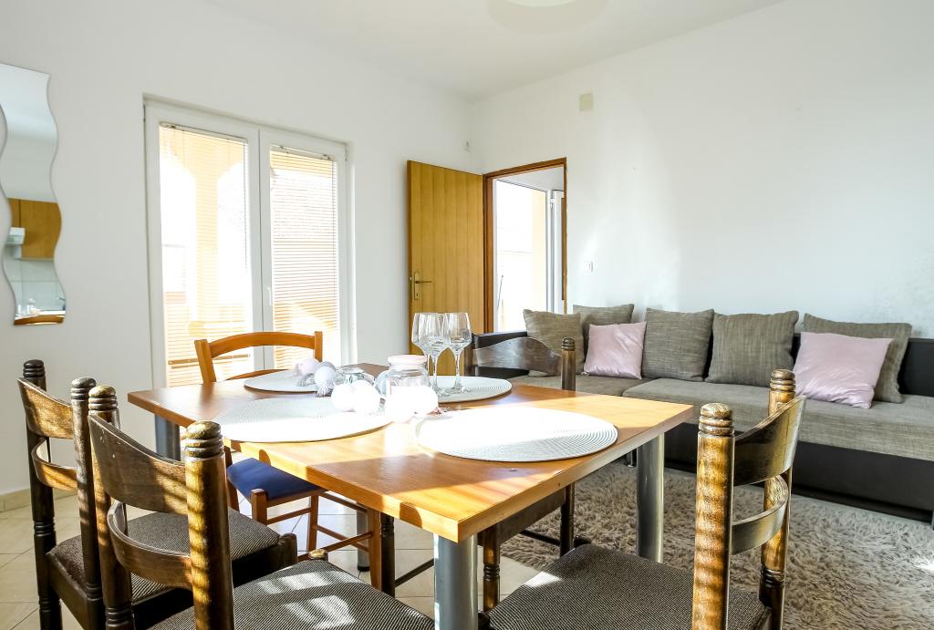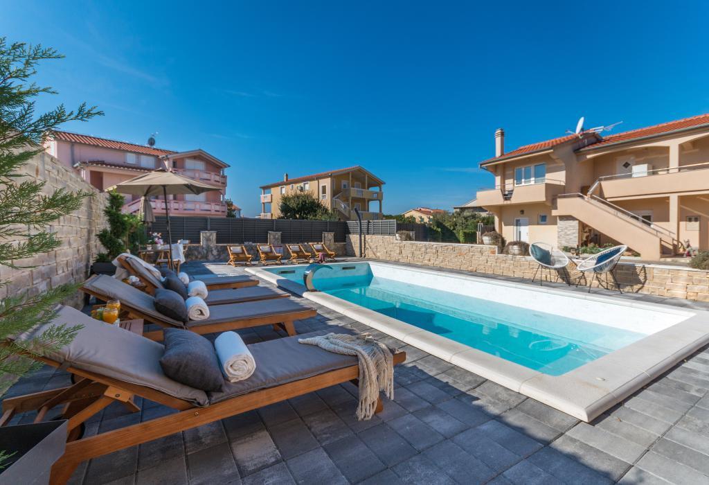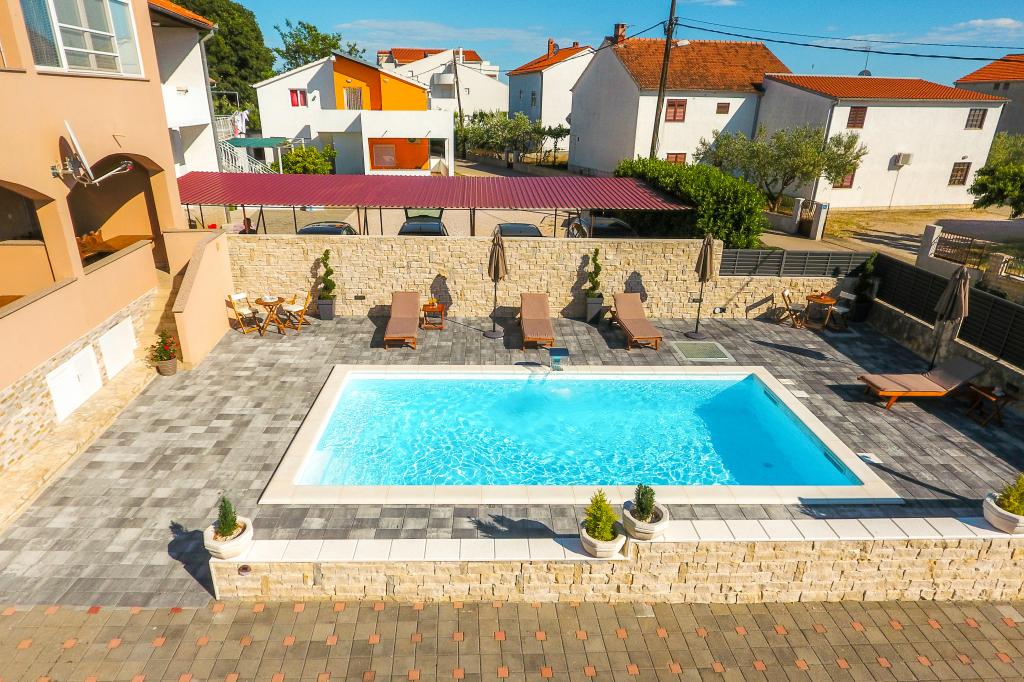 Neat and clean apartments, finally found an apartment with enough towels, dishes, glasses, bešteka. dishwasher, washing machine, roll, microwave, stove, air conditioning. large terrace, large parking. to the beach 2 minutes by car. quiet neighborhood, kind hosts. Clean pool enough sunbeds and umbrellas. The beds are comfortable.