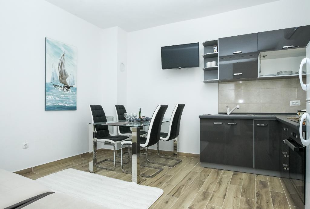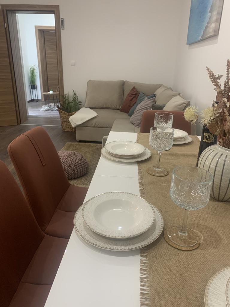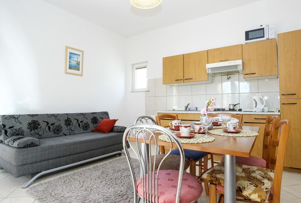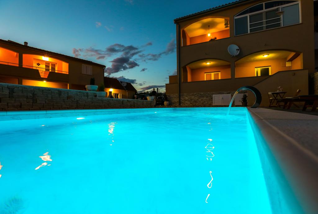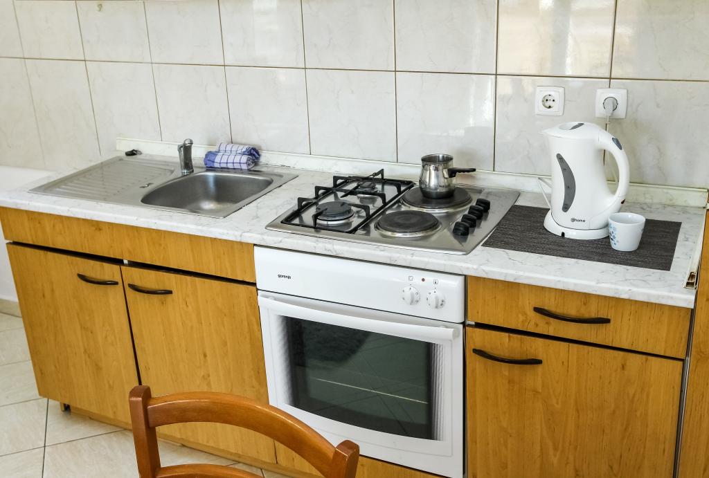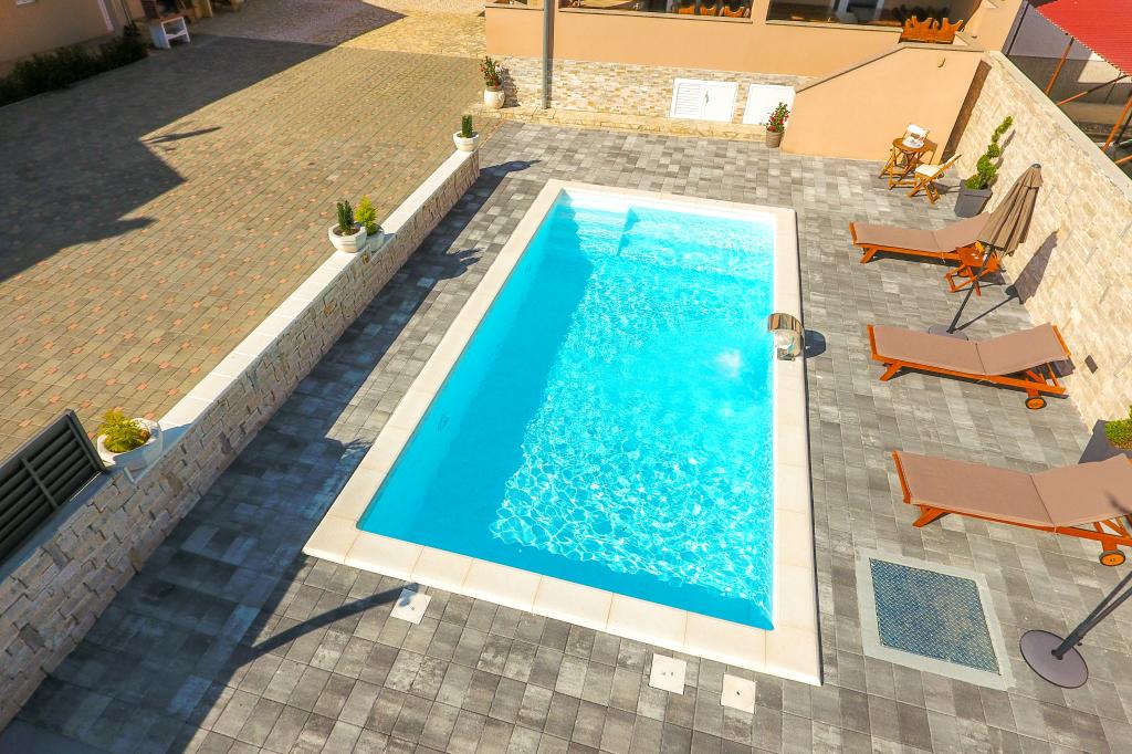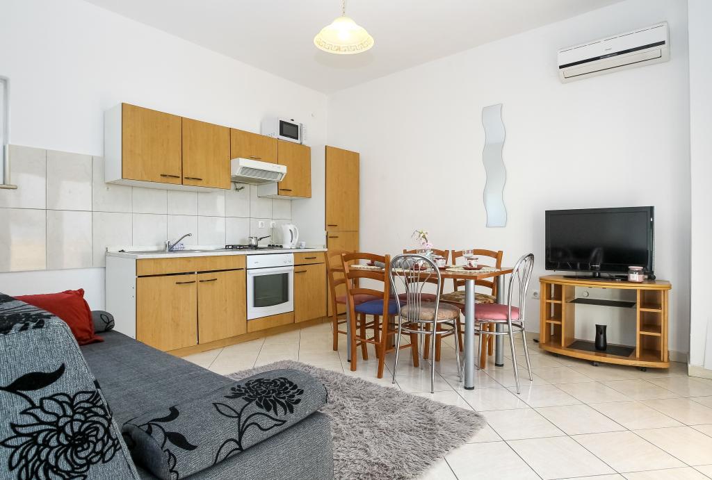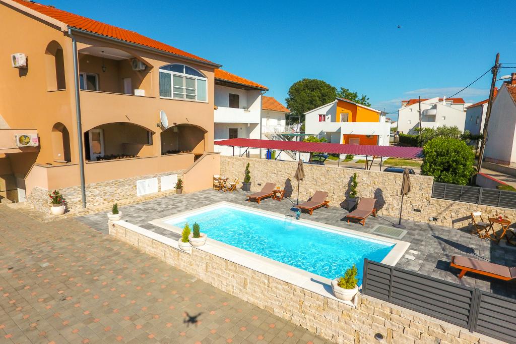 Neat and clean apartments, finally found an apartment with enough towels, dishes, glasses, bešteka. dishwasher, washing machine, roll, microwave, stove, air conditioning. large terrace, large parking. to the beach 2 minutes by car. quiet neighborhood, kind hosts. Clean pool enough sunbeds and umbrellas. The beds are comfortable.