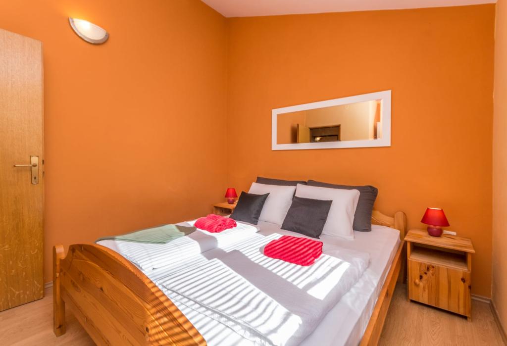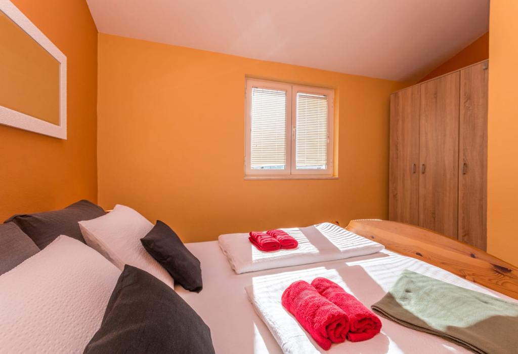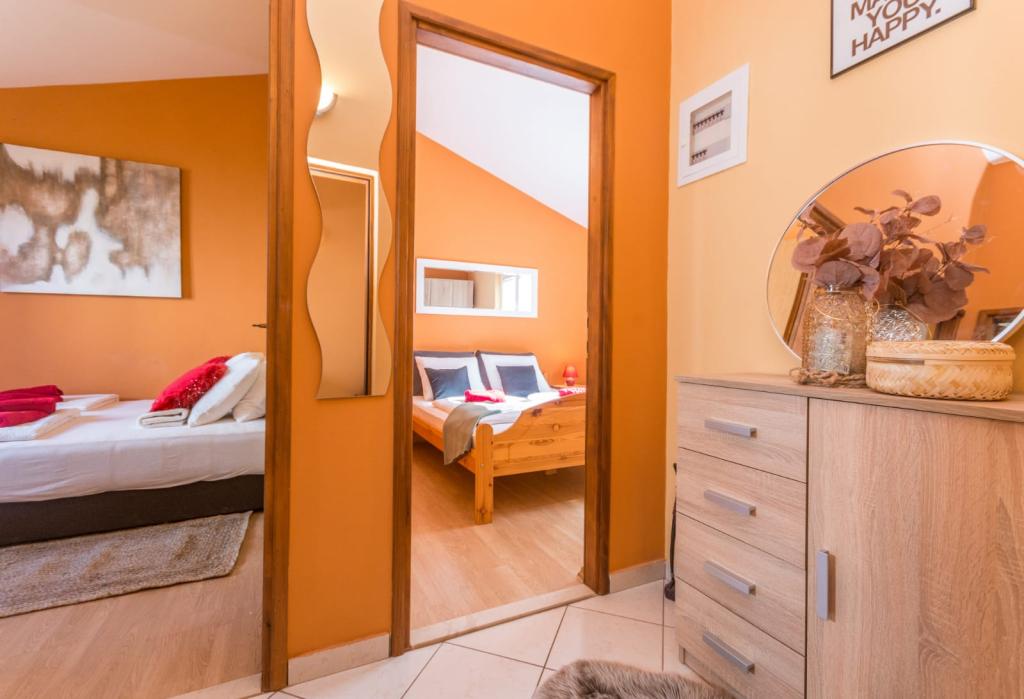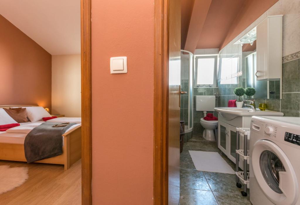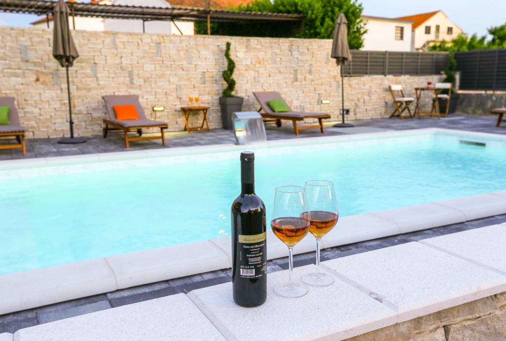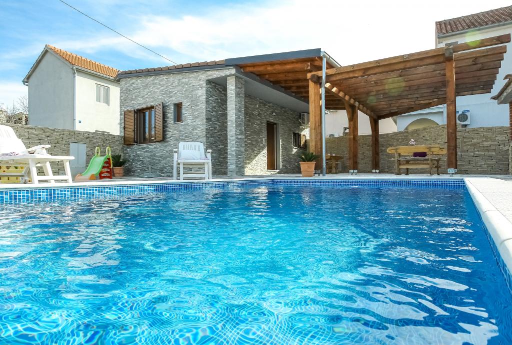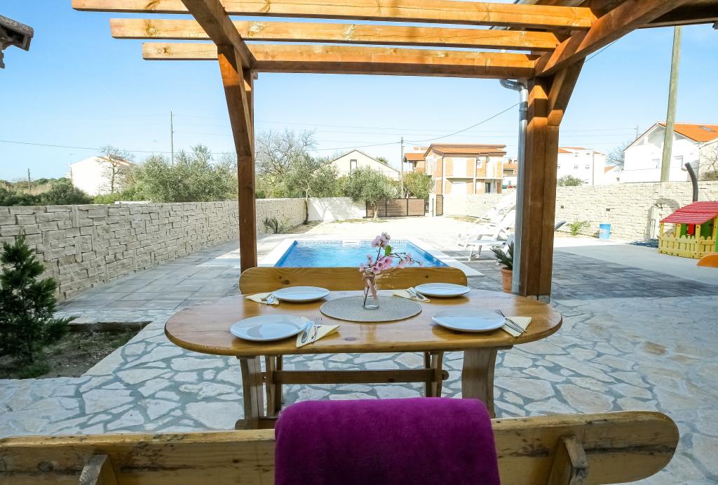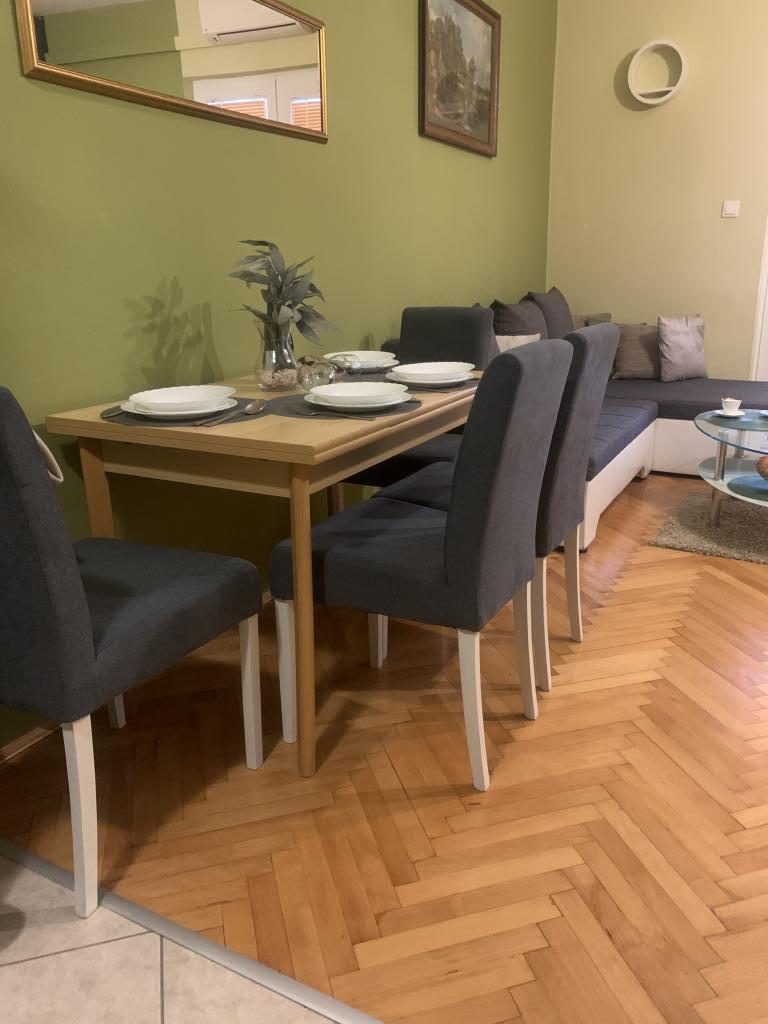 Neat and clean apartments, finally found an apartment with enough towels, dishes, glasses, bešteka. dishwasher, washing machine, roll, microwave, stove, air conditioning. large terrace, large parking. to the beach 2 minutes by car. quiet neighborhood, kind hosts. Clean pool enough sunbeds and umbrellas. The beds are comfortable.