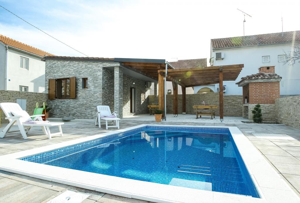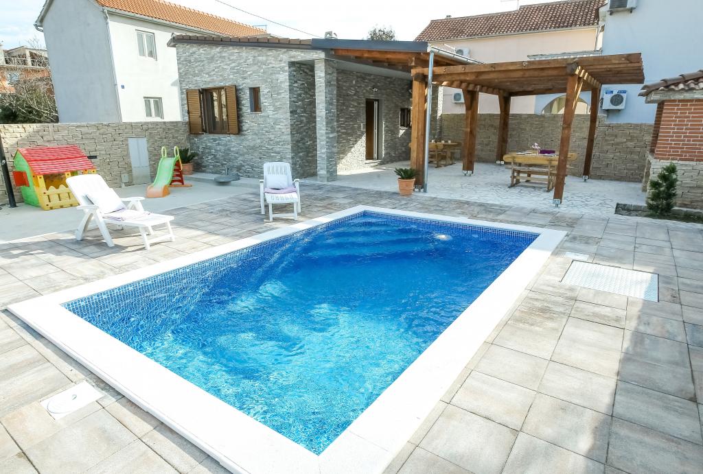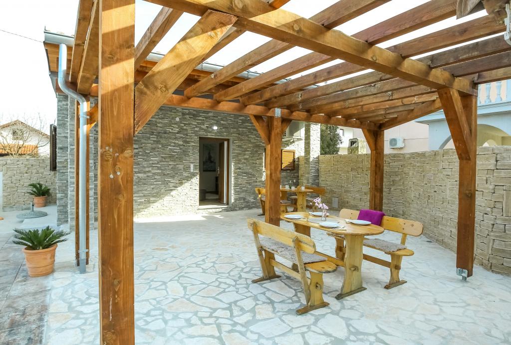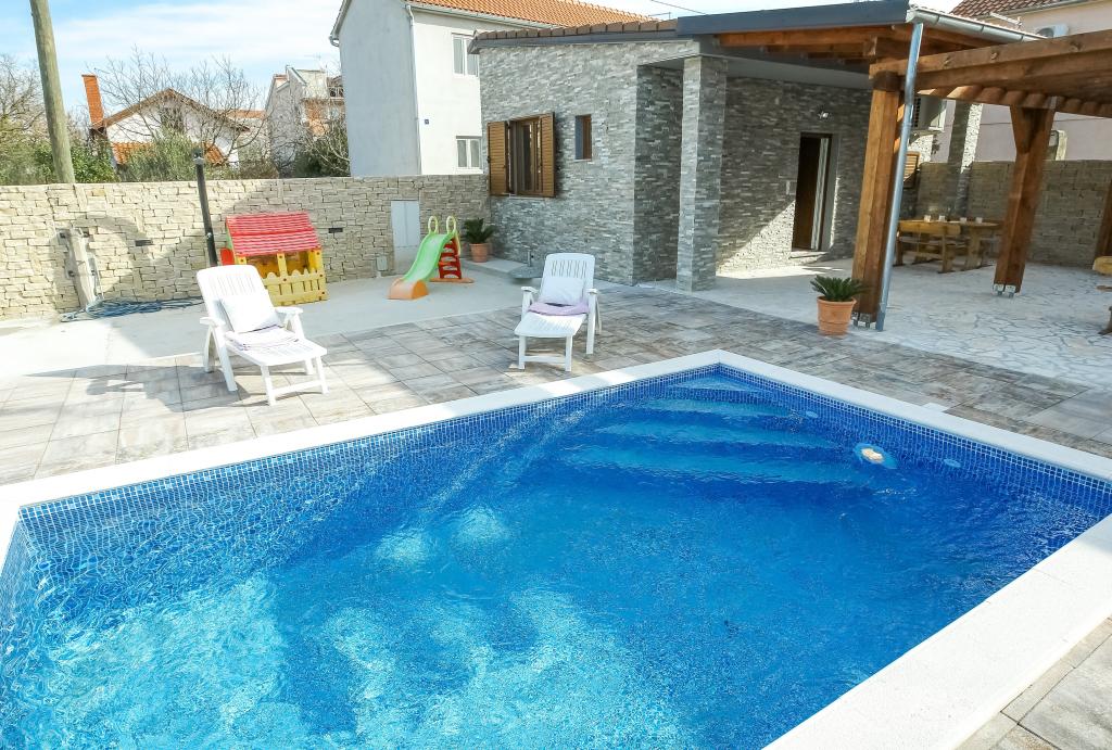 modernly equipped apartments in a quiet part of Biograd. very suitable for families with children. Large yard with sliding electric doors, children's playground. possibility to use the tavern for grilling and socializing. close to a sandy beach with lots of facilities and restaurants, aqua park, children's playground ... Possibility to rent the whole house with 2 apartments for two families with their own yard and barbecue. special offer - rent a holiday home of approximately 36 square meters that offers complete peace and privacy. own outdoor shower and outdoor grill. a large stone wall around the house with an electric door. Complete privacy and yet proximity to the beach and other facilities. Ideal for a family vacation.
