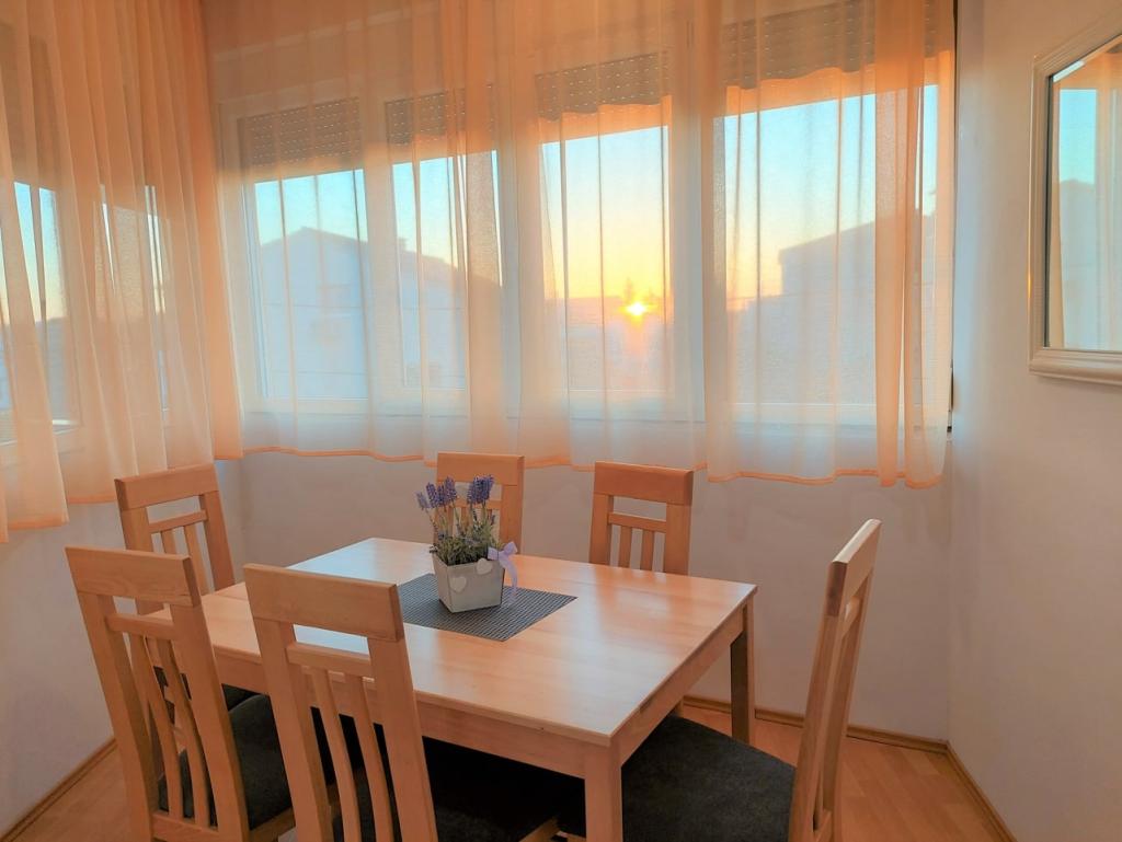 The apartment is very spacious, clean and offers plenty of room for five people. A small, cozy, family friendly beach ("Kumenat") is located in close proximity to the apartment. Furthermore, there is 100m from the apartment, a small shop with food, hygiene products, small toys and additional bells and whistles. The city center can be reached on foot in cozy for 15 minutes. I would recommend this rental property each still wants to be on holiday in the heart of the action, but to have his peace. Many thanks! Holiday in this apartment: any time!