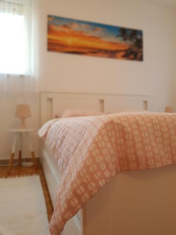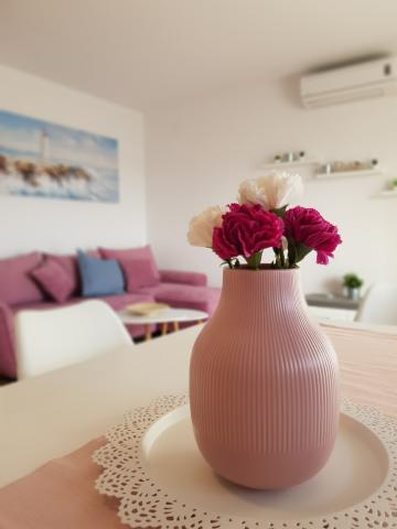 Apartments are located in a quiet part of Biograd. The apartments are located on the top floor of a residential building. Parking space is provided. The apartments consist of a bathroom with a shower, two bedrooms, a kitchen and a living room with a sofa bed. Guests have access to air conditioning, SMART TV, cable TV and unlimited Wi-Fi. Guests can enjoy everything that is needed for a pleasant stay, close to shops, beaches (no car needed).