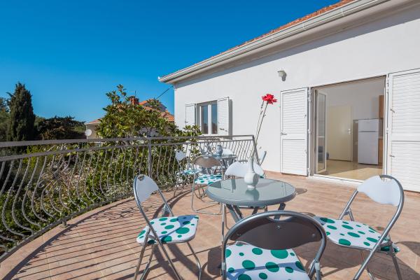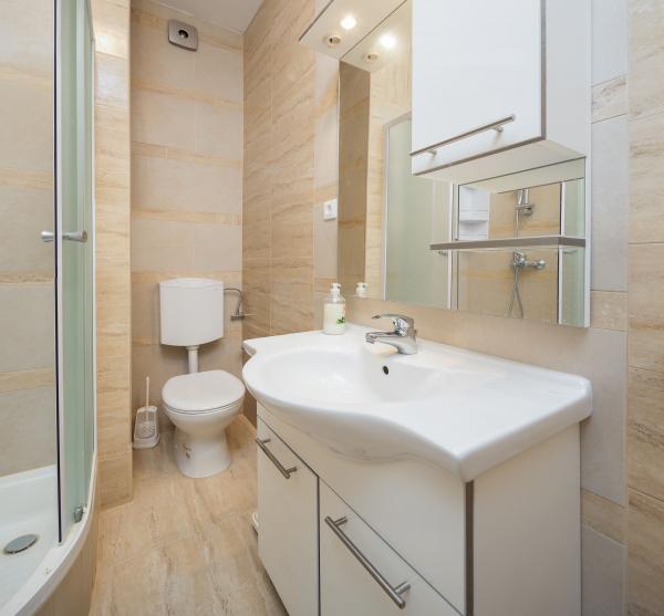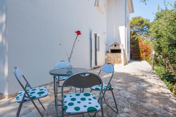 New renovated villa (2017). Villa consists of 5 apartments. The apartment has two bedrooms, living room with sofa for 2 persons. Each room has its own bathroom. Free internet access, air conditioning, parking, bed linen and towels. The apartment has a large terrace surrounded by greenery, just behind the green there are beautiful beaches, only 100 meters from the apartment. The apartment has a beautiful large garden, full of greenery, just behind the green there are beautiful beaches. The location is quiet and cozy luxury. Restaurants, shops, the beach immediately in the vicinity. 80m away from the apartment, there is a promenade, which has various facilities and leads directly to the city center. Beach holds a blue flag, marking the best beaches in the world.