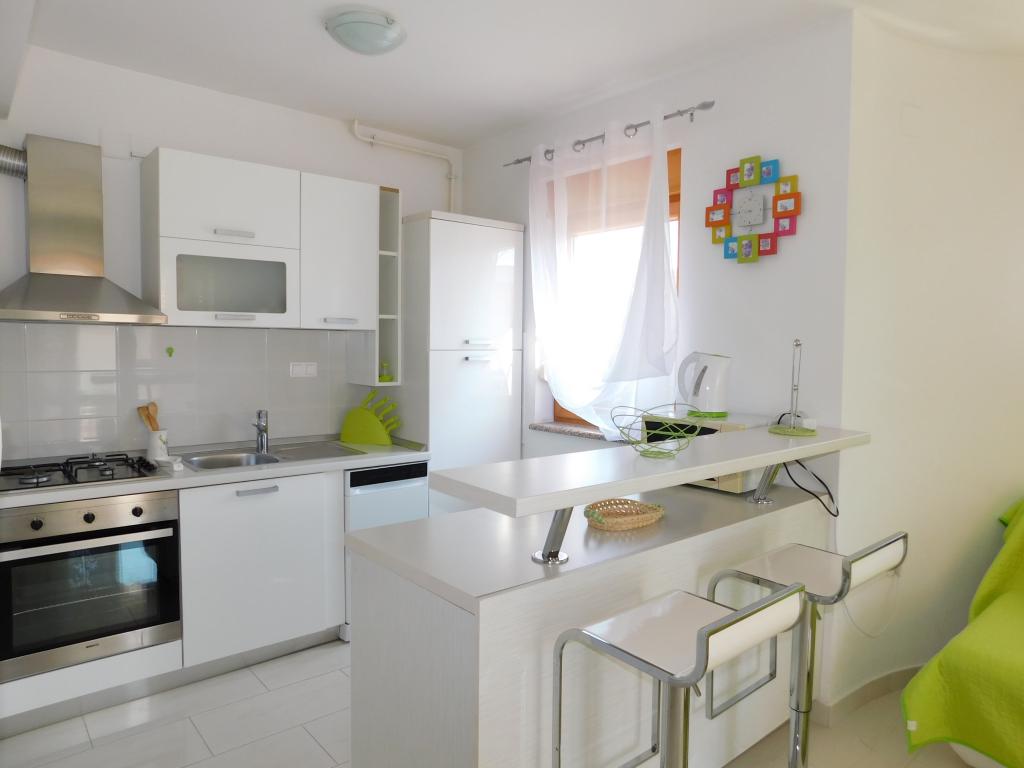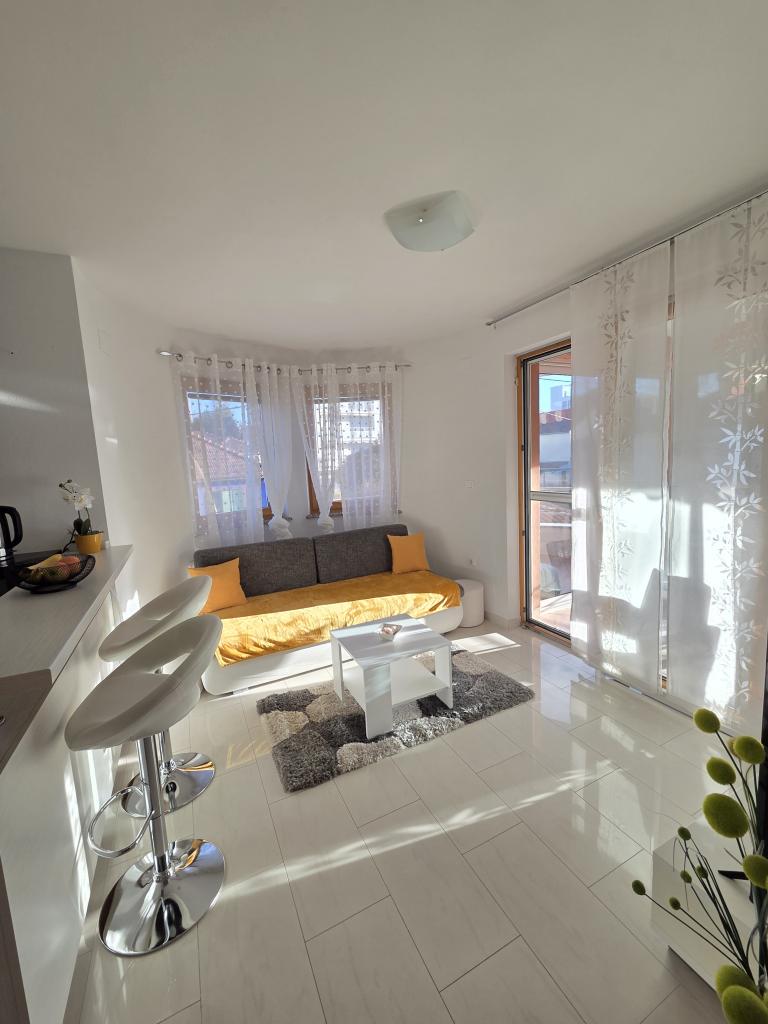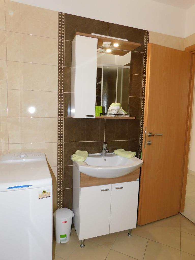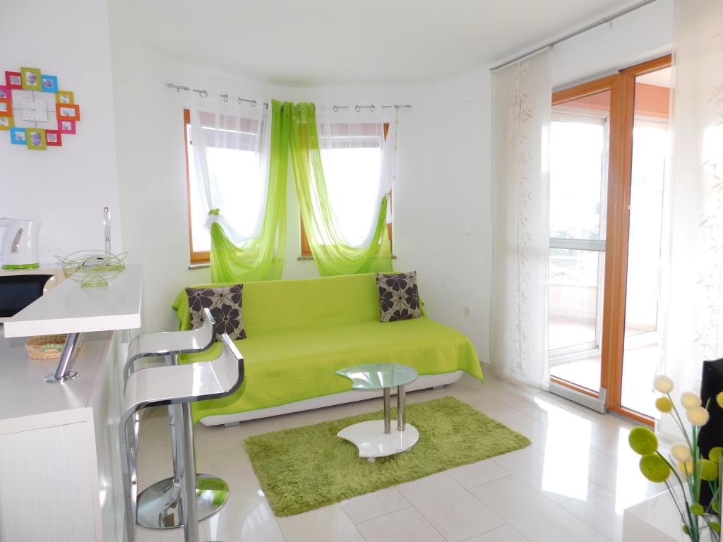 We stayed in a green apartment for 4 people. The apartment is nice, modern, great location, but for the price of 120 € we expected something more. Missing little things that are important and that make guests come back or not come back. For the stated price, we expected at least a set of 6 glasses, 6 plates, spoons and other cutlery. As in other apartments where we used to stay in the kitchen there should be dishwashing powder, a little bit of sugar, salt, possibly spices, a little oil, vinegar and other necessities just enough to have for the first moment. In some other apartments, guests are greeted with a bowl of fruit or a bottle of wine. There is also a parasol on the terrace and comfortable chairs. The terrace is therefore not usable. There is a beautiful sofa in the living room, but it is quite uncomfortable as is the bed in the children’s room. Television has only a few basic TV programs. All in all a nice apartment, a kind host, but there is no additional service that would justify such a high price.