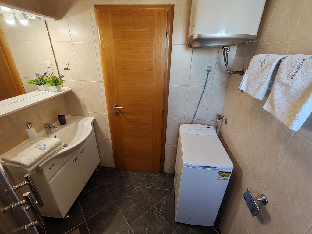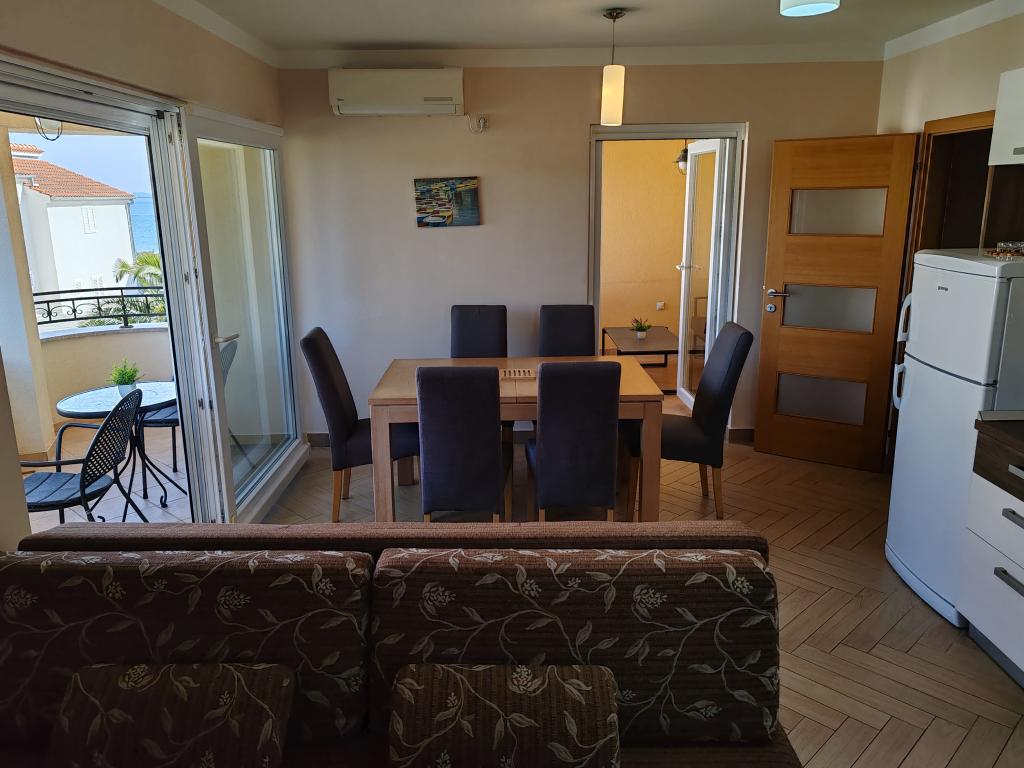 The apartments are located in a house located in the quiet settlement of Kumenat. It is surrounded by greenery and nature, only 250 meters from the sea. The facility consists of 5 apartments with a capacity of 4-6 people. All apartments are air-conditioned, with TV and a terrace with a view of the sea. Each apartment has a washing machine. Around the building, parking is provided for all guests, and if desired, the use of an outdoor grill.