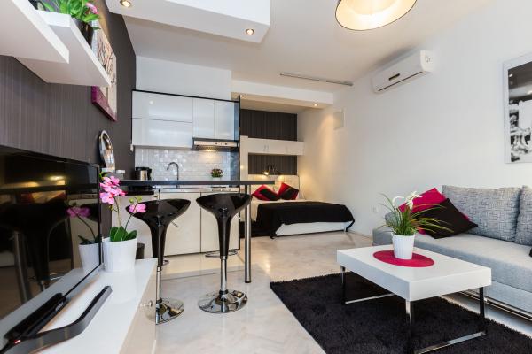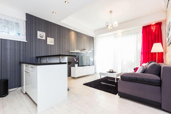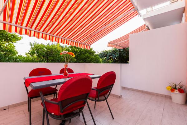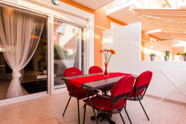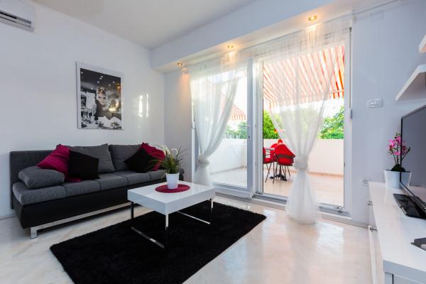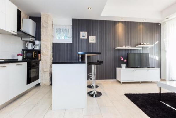 Luxury apartments near the center, located 7 minutes from the beach and 10 minutes walk from the old town. Brand new and fully equipped, each apartment has a separate entrance and a terrace where you can relax in the warm summer nights. They are surrounded by a beautiful garden with trees, oranges and lemons. Natural shade provides loznica kiwi below which is a swing where you can enjoy eg. A refreshing drink. Fresh fish can bake on the grill in the garden and use a table in the garden gazebo. The house is situated so that you are getting close and yet there is an oasis of peace that allows you to rest and relaxation. 70 m away is a supermarket and a marina, and 200 m shopping center. Each apartment has parking, air conditioning, satellite TV, WiFi, internet, safe, microwave, kettle, coffee maker, toaster, blender, iron, ironing iron, hair dryer and so on. Each guest staying in our apartments 7 days and longer gets free dinner at our restaurant Roko and all other days 10% discount as well as all of our guests.