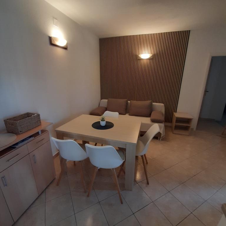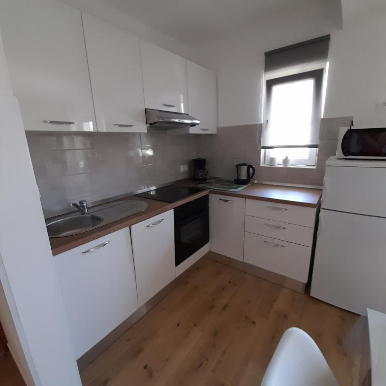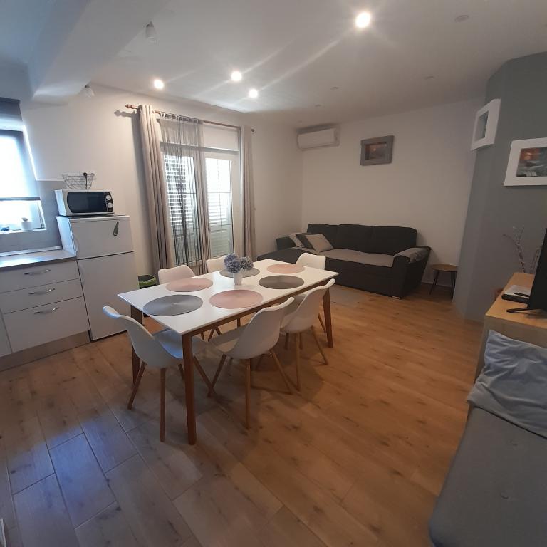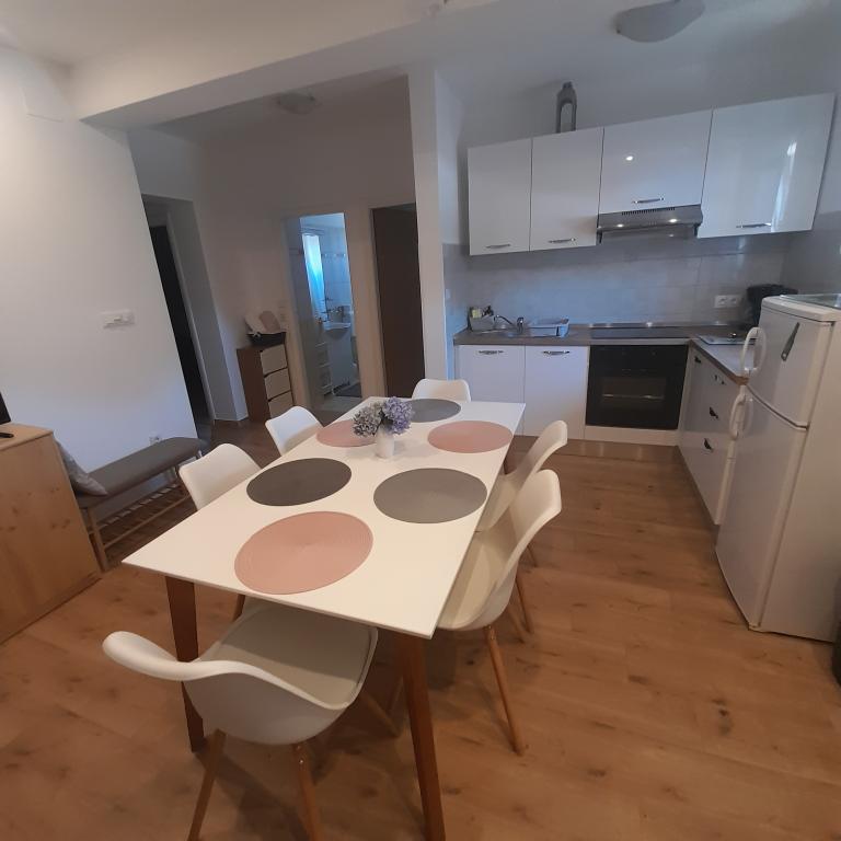 The apartments offer comfortable accommodation in two spacious apartments with large terraces. They are located in a family house in a newly renovated building, in a street without traffic, away from city noise. Accommodation is suitable for family vacations, holidays with groups of friends as well as for active vacations in Biograd. It is a ten minute walk to Dražice and Solina beaches, and also to the city center.