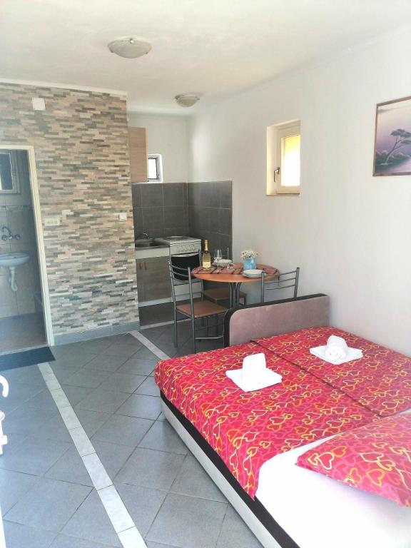 Apartment with three bedrooms, kitchen, toilet and hallway, located in a quiet part of town above the main sandy beach Soline 10 minutes walk. The apartment is on the ground floor with a large yard ideal for children and a barbecue for adults. Free parking is provided right in front of the apartment. An ideal place to relax.