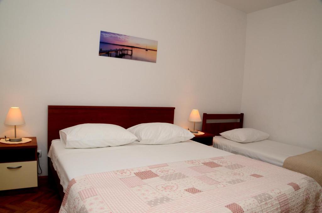 We stayed in Ante and Marija's apartment, wonderful hosts. The apartment is located in a quiet area and is truly comfortable, having three bedrooms and two full bathrooms (unusual in vacation apartments). The bedrooms are spacious with comfortable beds. It's on the first floor of a genuine Dalmatian stone-clad house, not one of those hideous glass, steel, and concrete cubes they're building now! It has a large garden filled with plants that also serves as a shaded parking lot. The amenities are as described and well-stocked. The only negative, if any, is the access to the gate: I could get in with my Lancia Musa without any problems, but our friend with a seven-seater had a bit of difficulty at first, but after the second time, with caution, he got in easily. Ante, however, is helpful and explains the tricks for access. Access to the beach is quick and easy. I, who have walking difficulties, took 10 minutes, while our friends took half that time. I don't know what else to add that isn't already mentioned in the description, except that I highly recommend the Merle family's home. Thanks to Marija and Ante.