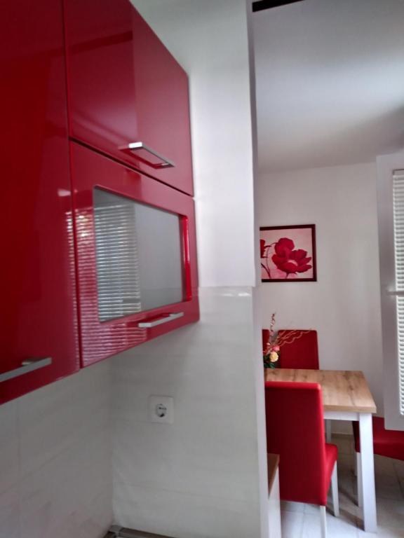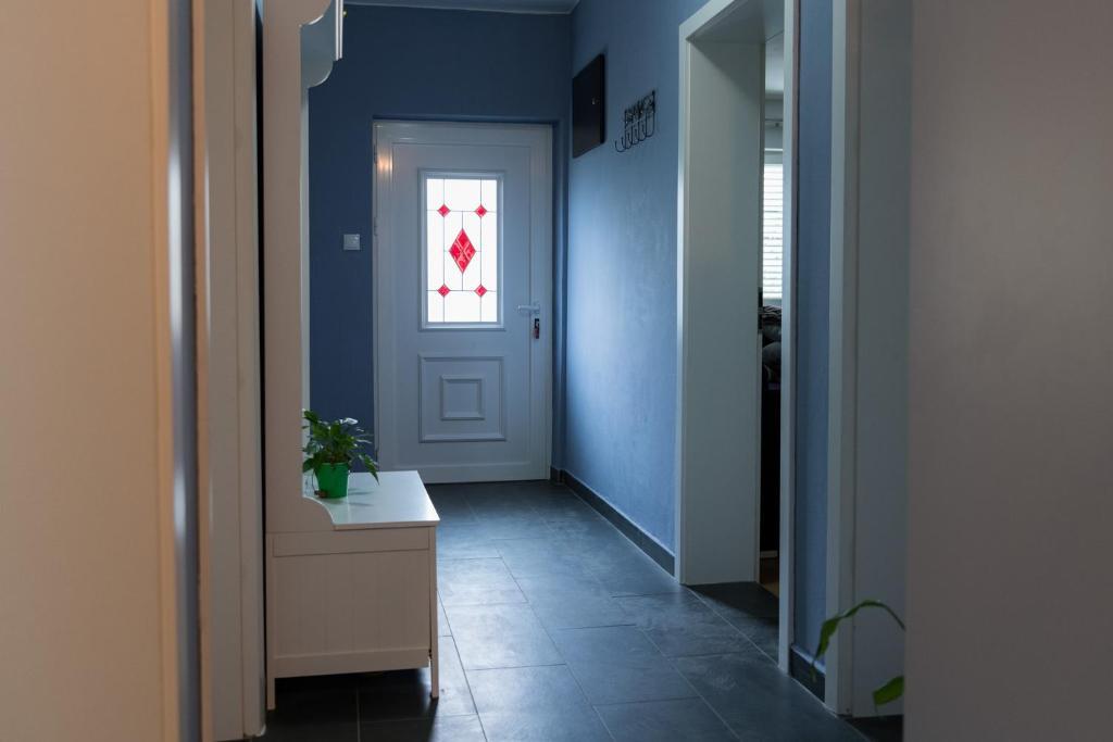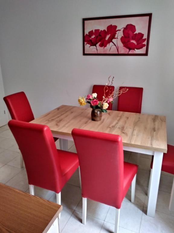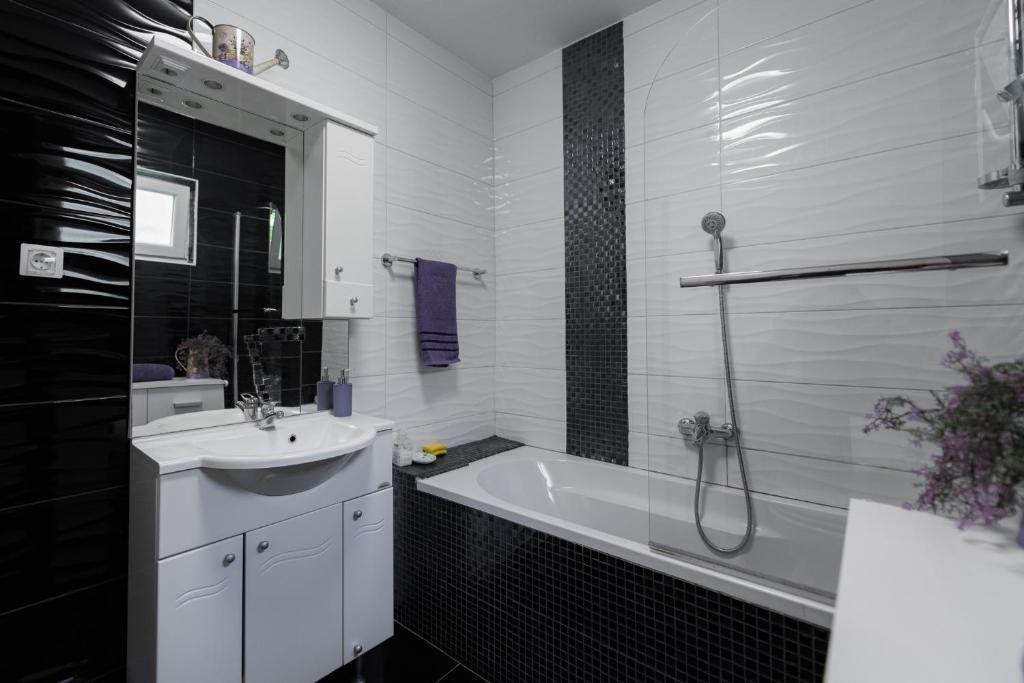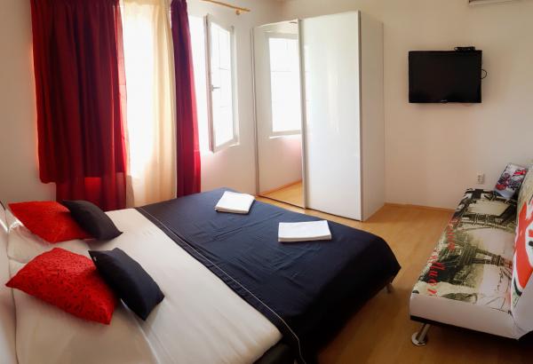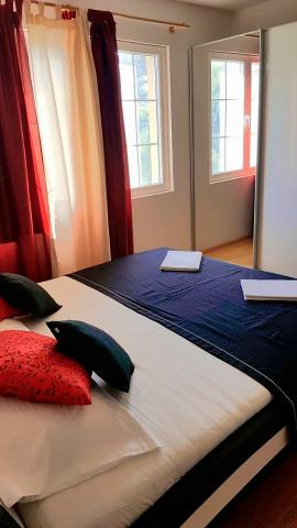 Apartment A4+2 is the entire ground floor of the house with a separate entrance, fully and modernly equipped, 90 m2. It has a spacious and comfortable living room, two bedrooms, a kitchen with a dining room, a bathroom and a hallway. .A large terrace with a view of the pine forest is at guests' disposal. There is a landscaped garden in front with greenery and flowers. It is located in a quiet, beautifully landscaped street. It is a 15-minute walk to the beach. Parking is provided in the shade in front of the house. Internet access 24 hours a day. A grill and a bakery are available for guests next to the house. It is equipped for 6 people, and a baby cot is available free of charge on request. Apartment 2+1, is on the first floor of the house, 40 m2, modernly equipped, completely new with a view of the pine forest, It consists of a kitchen, dining room, bathroom and bedroom. TV, internet, air conditioning. It is equipped for the stay of 3 people. Guests have access to a grill, bakery, parking and a terrace. The apartment has a separate entrance and its own terrace...