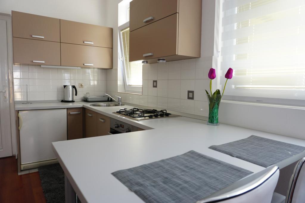 The apartment is unbelievably beautiful and comfortable, with so much new and useful equipment (dishwasher, coffee maker, oven, big fridge with freezer, air condition, tv, wi-fi…). Everything is clean and beautifully decorated. There are also two spacious balconies. The location of the apartment is great – you can reach town center in 5 minutes by foot, the marina and beach Bošana are also very close, but there is no noise so you can enjoy your holidays in peace through day and night. Grocery store is just around the corner. The owners are very kind, they provide fresh towels every two or three days. I recommend staying here!