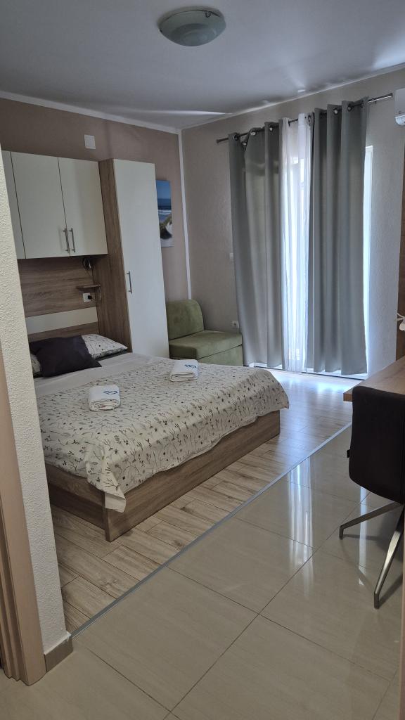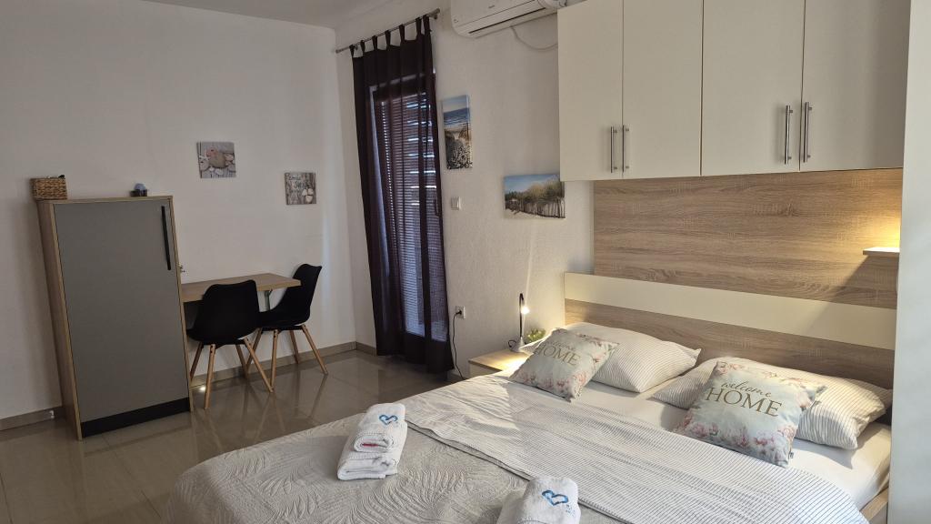 Newly built and fully equipped and modern apartments in Biograd, located near the beach and bay Dražice and only a few minutes walk to the city center. The house has 4 apartments, 2 x 25m2 terrace, 1x40m2 terrace and 1x100m2 terrace. All apartments are equipped with air conditioning, free WIFI, TV, parking and barbecue in the backyard.