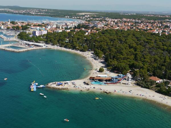 Vice Apartments are located in the town of Biograd in a beautiful exclusive resort with private villas, a wooded and quiet area. It is this small distance from the center is a prerequisite for perfect peace and the possibility of relaxation of the usual hustle and bustle that is located in the city during the summer. Although separated from the city, however, thanks to a beautiful promenade are only ten minutes away from the waterfront where you will get a leisurely stroll by the sea. The resort is located next to a modern campsite surrounded by beautiful pine trees. We sincerely hope that we will be your best choice for your home and look forward to seeing you.