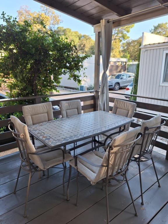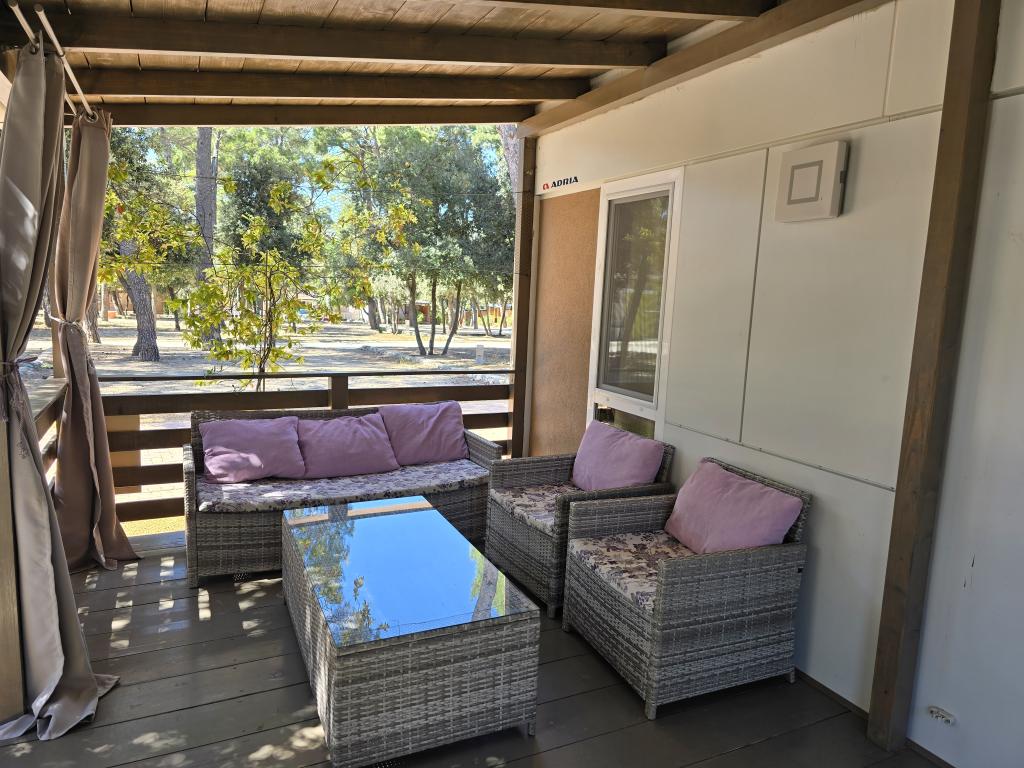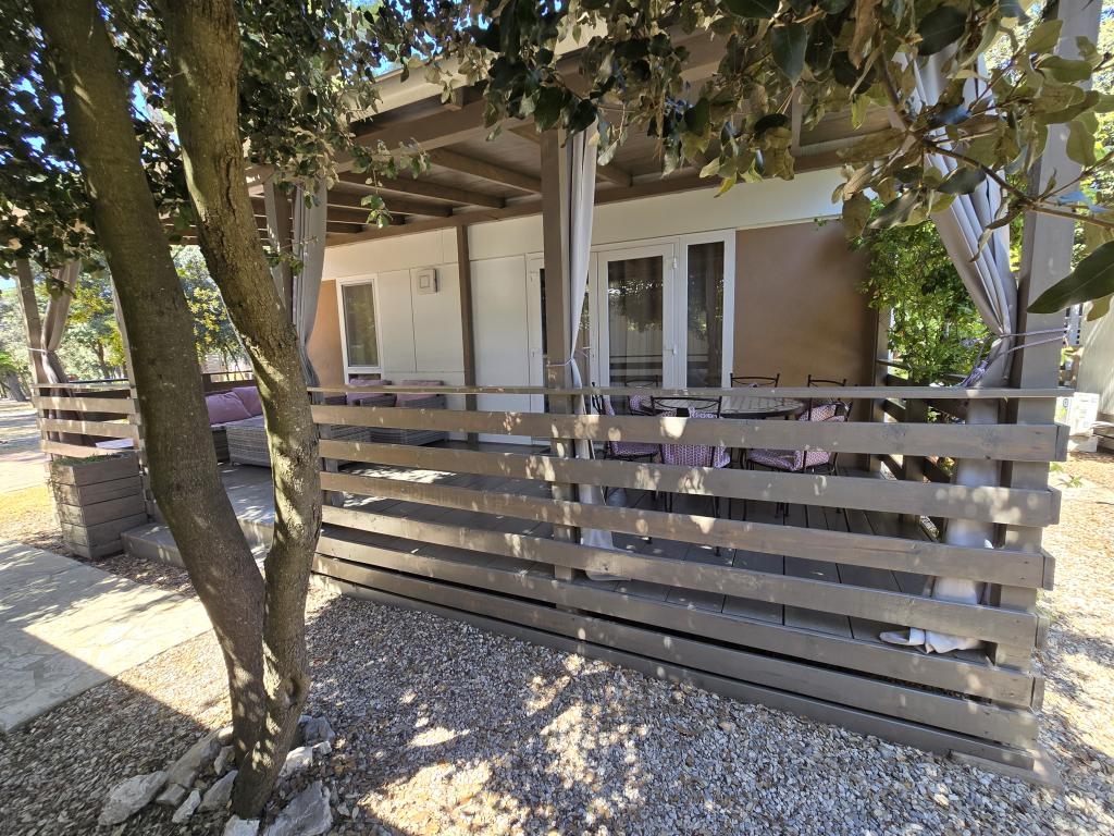 Fully equipped mobile home with an area of 30 m2 with a large terrace and a parking space. Located in a quieter part of the Soline camp, not too far from the noise of restaurants and cafes and the beach, yet close enough.
