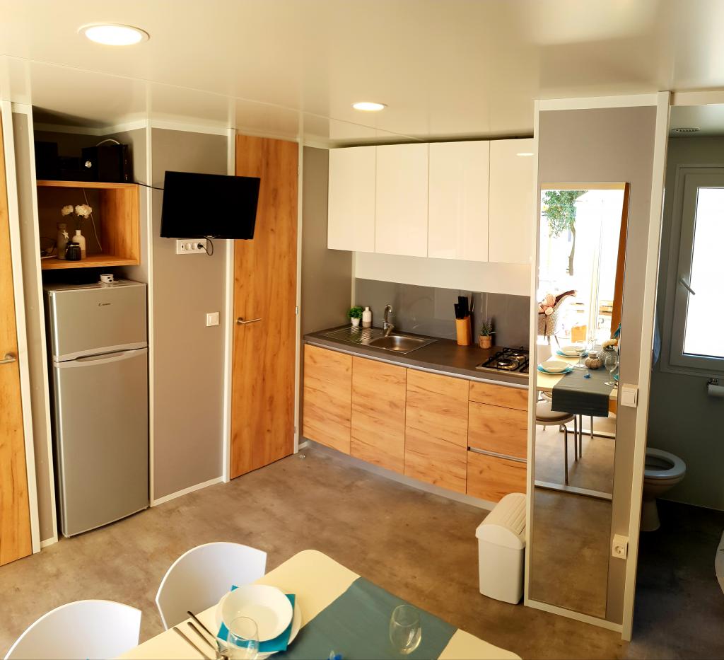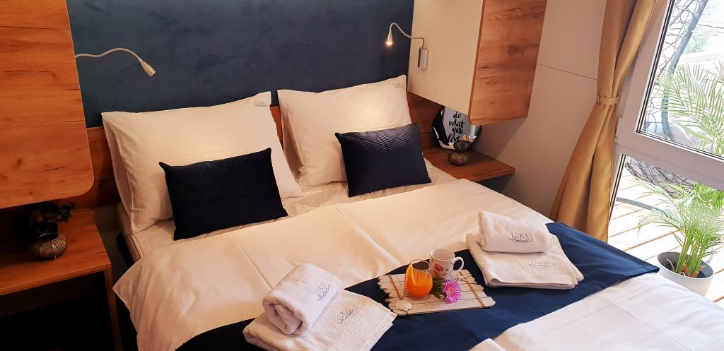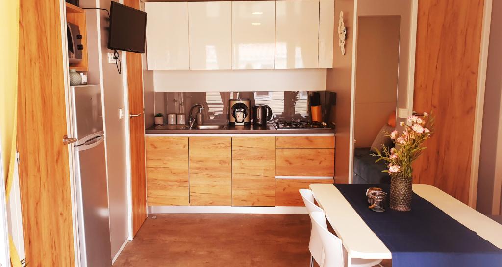 New, modern and fully equipped mobile homes located in Camp Soline, Biograd na moru! The cottages are about 3 minutes walk from the pebble beach and about 5 minutes walk from the sandy beach, also 10 minutes walk to the center of Biograd along the promenade full of contents for all ages! In the camp there is a shop, bakery, restaurant, bar, parks for children, laundry, equipment for recreation. .