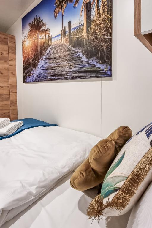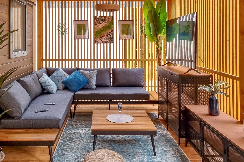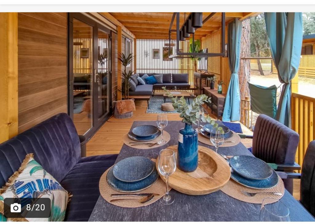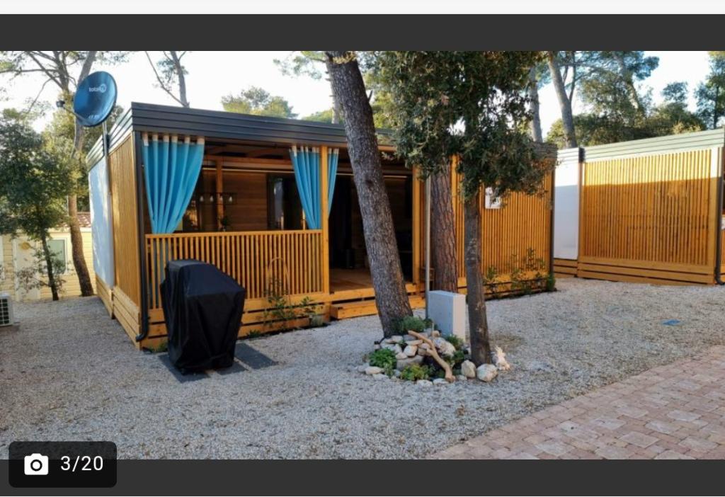 Our modernly equipped mobile home offers comfortable accommodation for up to 6 people, with 2 spacious bedrooms, a living room with a sofa bed and 2 bathrooms. Enjoy the large covered terrace equipped with a dining area and an outdoor living room, ideal for long evening gatherings. Here you can enjoy darts or relax in front of the big TV, while grilling on our large gas grill and outdoor stove. The covered terrace is surrounded by pine trees and a gentle breeze from the sea. On one side of the terrace there is a spacious dining area equipped with a comfortable sofa and even more comfortable armchairs, while on the other side, our outdoor living room offers a comfortable seating area where you can not only relax, but also enjoy your favorite TV shows on the huge TV with available satellite TV channels, Netflix and HBO GO. The house is located 3 minutes from the beautiful beach.