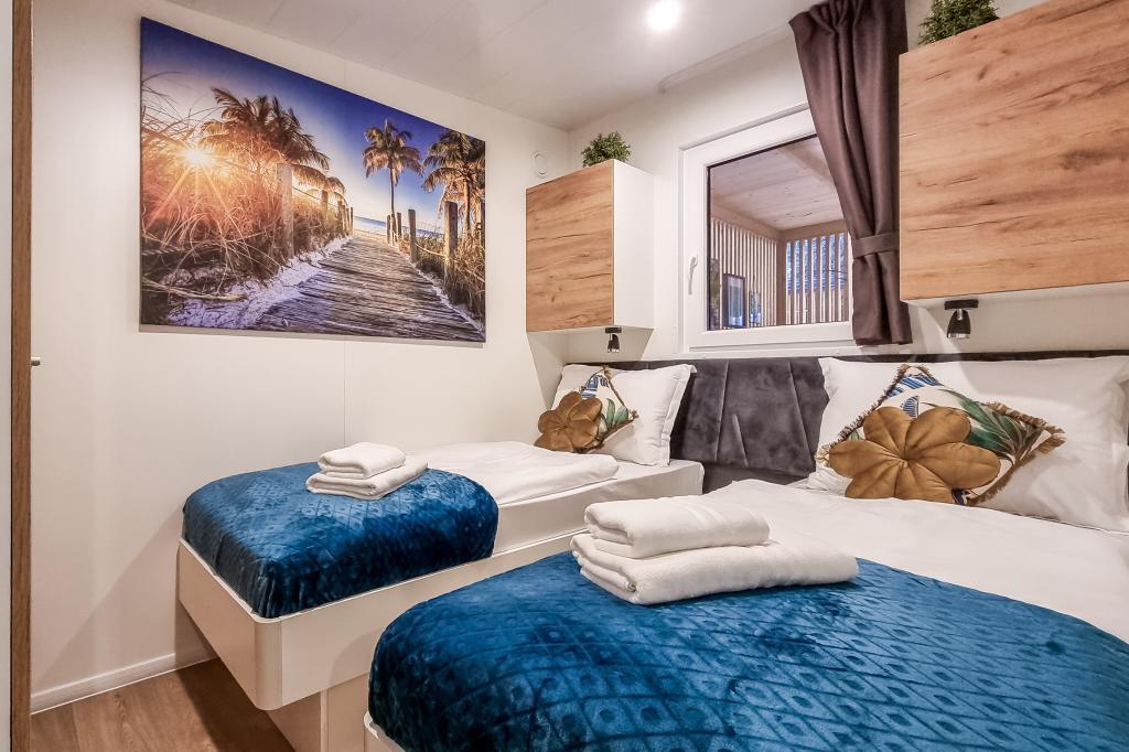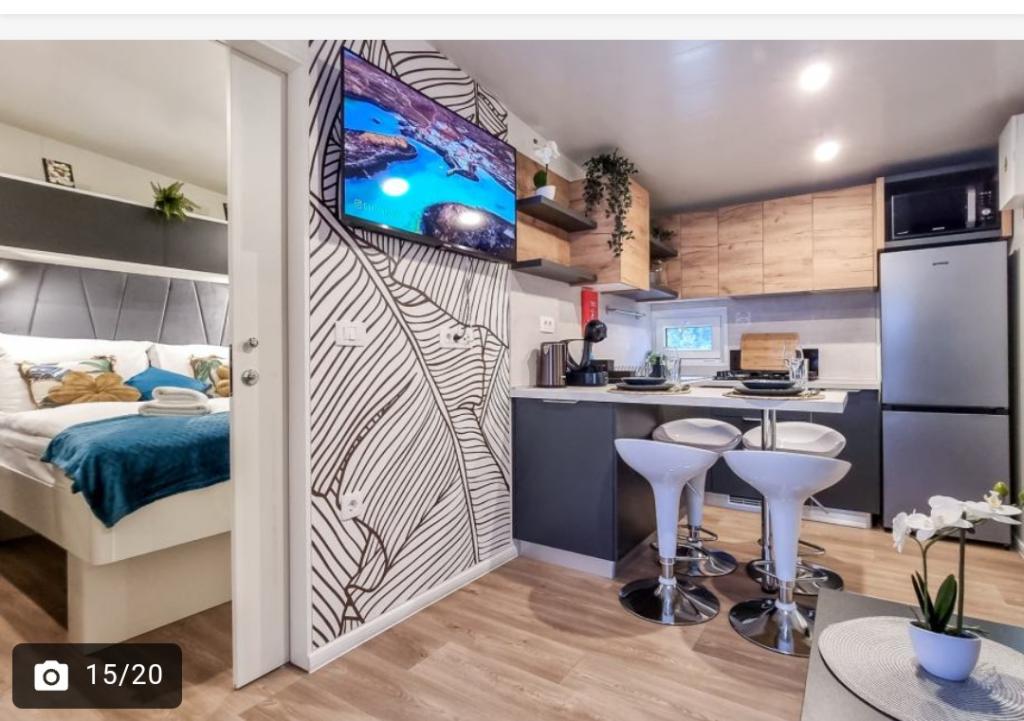 ️Large covered terrace with dining area and outdoor living room with large TV and darts ️Large gas grill + gas stove ️Fully equipped kitchen (fridge, microwave, gas stove, kettle, coffee maker, dishwasher, toaster, all necessary dishes) ️Living room with large TV ️Free WI-FI, SAT TV, air conditioning ️Comfortable damask bedding and towels ️Hair dryer, iron ️High chair for children ️1 parking space, second parking space for an additional fee The Pearl House mobile home campsite is located just a 3-minute walk from the sandy and pebble beach and a 10-minute walk from the center of Biograd. The campsite and its surroundings have everything you need for a relaxing holiday - from shops and restaurants to sports fields and children's playgrounds. And the greatest pleasure is enjoying the sun and sea, as well as the possibility of going on excursions to attractive national parks such as Krka National Park, Kornati National Park, Paklenica National Park, or historic cities such as Zadar and Šibenik.