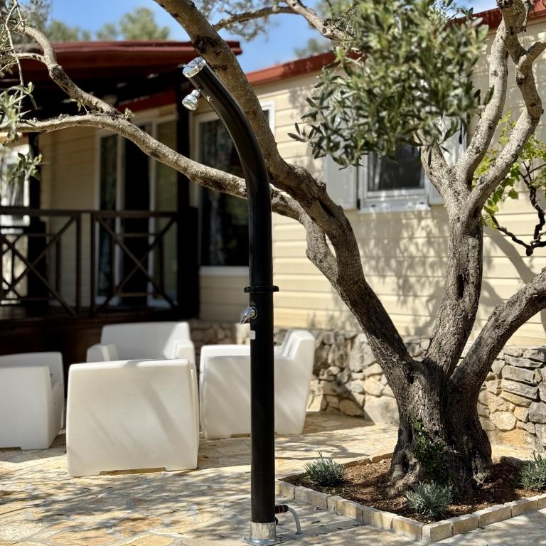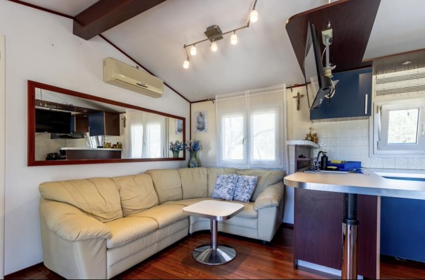 The mobile home is located within the Bakija camp, 40m from the sea, with easy access to the beach. Not far from the Soline beach, 2-3 minutes on foot, 1 minute walk to the Studenac market, and 7-8 minutes on foot to the center. Fully equipped with garden, kitchen, comfortable living room. Your own outdoor grill within the cottage and your own outdoor shower. The facility is for 4 people, 2 rooms, 2 bathrooms, one of which is a bathroom with a massage tub. A spacious terrace, perfect for a pleasant stay with a view of the sea and beautiful sunsets.