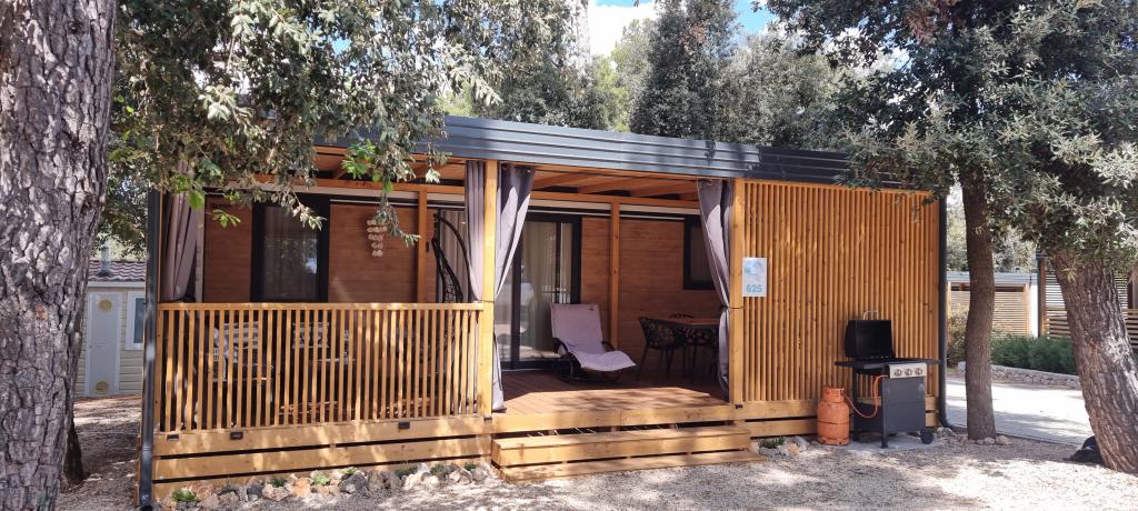 TONKA is a fully equipped mobile home with two rooms [one with a double bed and the other with three separate beds], wardrobes, bathroom with shower, living room with an extra pull-out bed [130 x 180 cm], fully equipped kitchen, air conditioning, and a large terrace that is equipped with a gas grill, and a dining table, terrace furniture with a small table, two comfortable deckchairs, and a hanging egg chair with a pillow, a hanging swing, wireless Internet access available in the entire area for free. The mobile home is located in the peace of the pine forest in the Soline park camp in Biograd na moru. TONKA is 2-3 minutes' walk from the restaurant, beach, and coffee bar. In the camp there are machines for washing and drying clothes, a shop, an ATM, a bakery, a children's playground and everything you need for a pleasant stay. In the immediate vicinity of the camp there is a promenade by the sea, the center of Biograd, the Kornati marina and all that cc 10 min walk...
