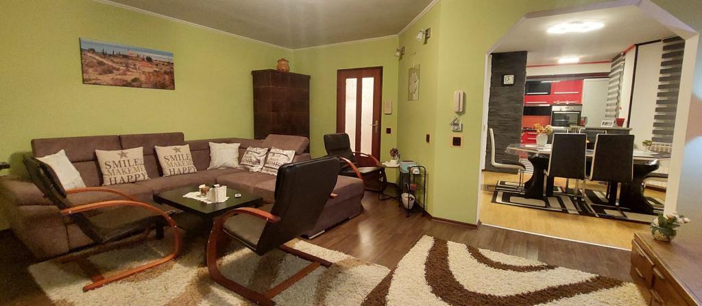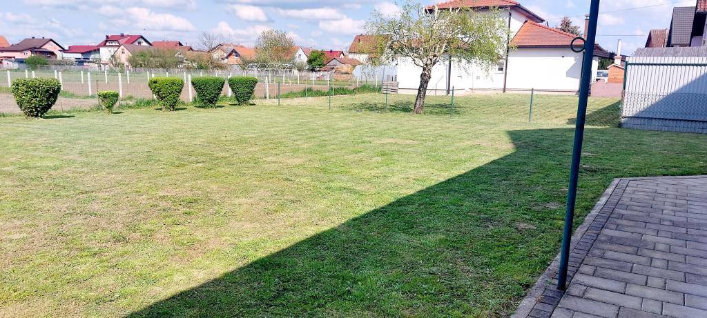 Come and enjoy a wonderful vacation in our modernly decorated Apartment Matea located in the quiet and charming Bjelovar! This spacious 70 square meter apartment can accommodate up to 4 guests and is located in a quiet and peaceful neighborhood (street) 2km from the city center, without traffic and car noise. The apartment consists of 1 bedroom, bathroom, kitchen, living room, dining room, balcony and covered terrace. The property includes parking for 3-4 cars and the possibility of using a garage, a covered terrace with a grill for 10 people, a playground for children and a fenced garden full of greenery of 700m2.
